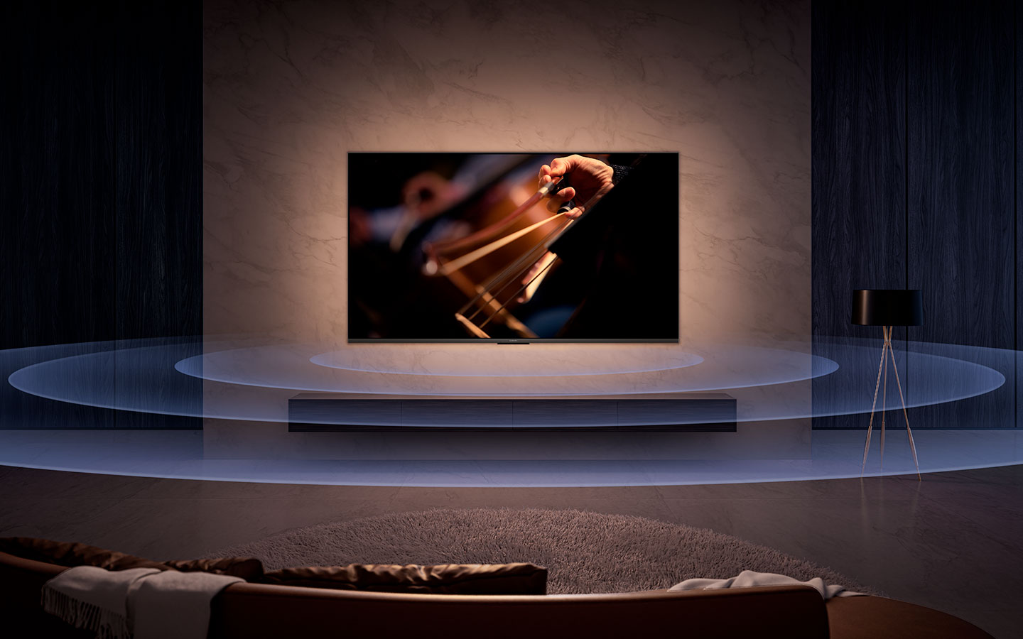 Un dormitorio inteligente no sería nada sin un centro de entretenimiento funcional, que te permita la mejor experiencia de visualización junto con el control total de todos los productos.