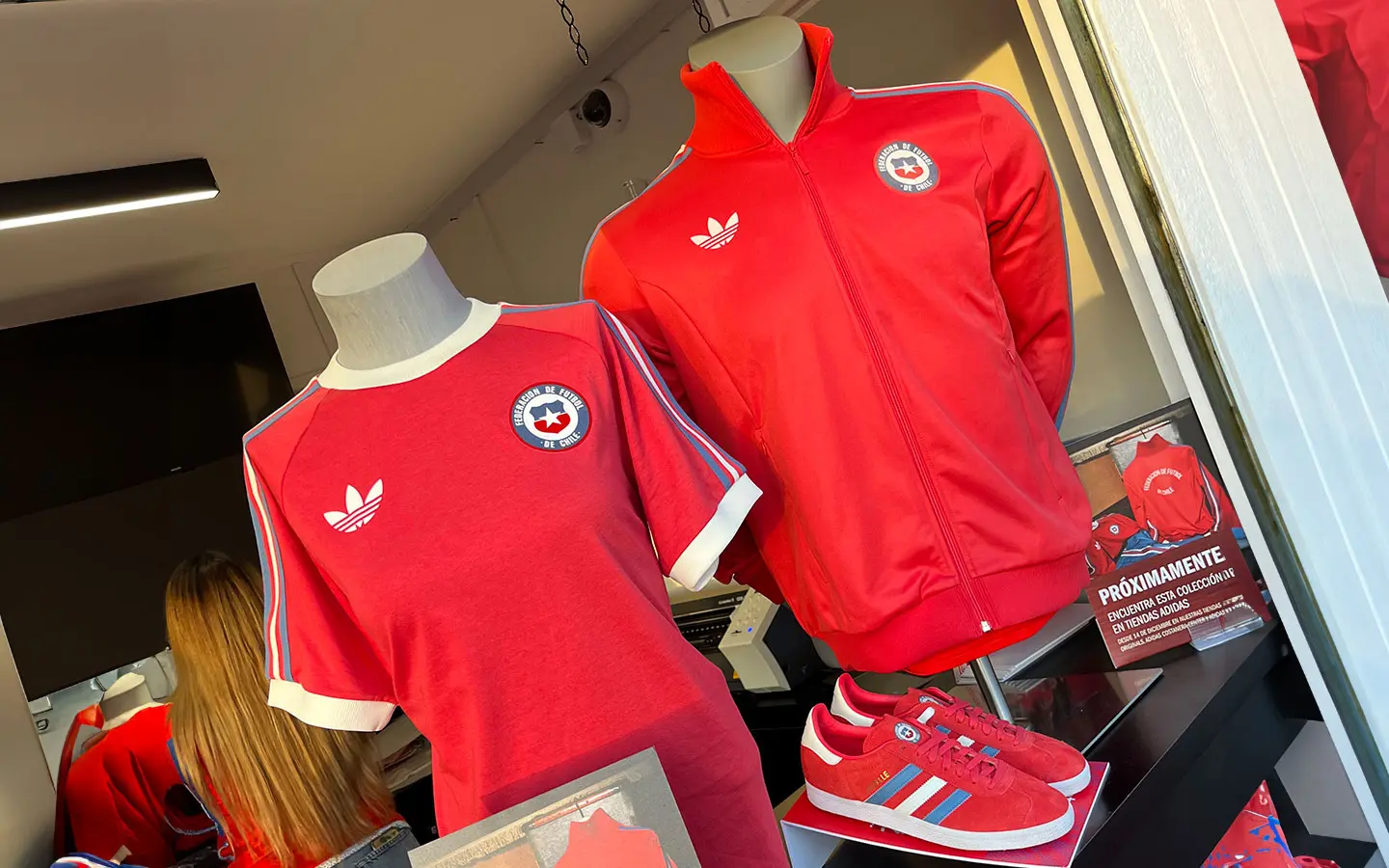 La nueva camiseta de La Roja, revelada junto a las de otras potencias, rompe esquemas con un corte, tejido y confección únicos. Priorizando la estética para los fanáticos que viven y respiran la cultura del fútbol. En rojo vibrante, las mangas llevan las tres rayas con los colores patrios, añadiendo un toque nacional a la indumentaria. En sintonía con la nostalgia, adidas presenta la chaqueta roja de la línea, con las tres franjas y el distintivo «Federación de Fútbol de Chile» en el dorsal. Rindiendo homenaje a épocas doradas de la selección chilena.