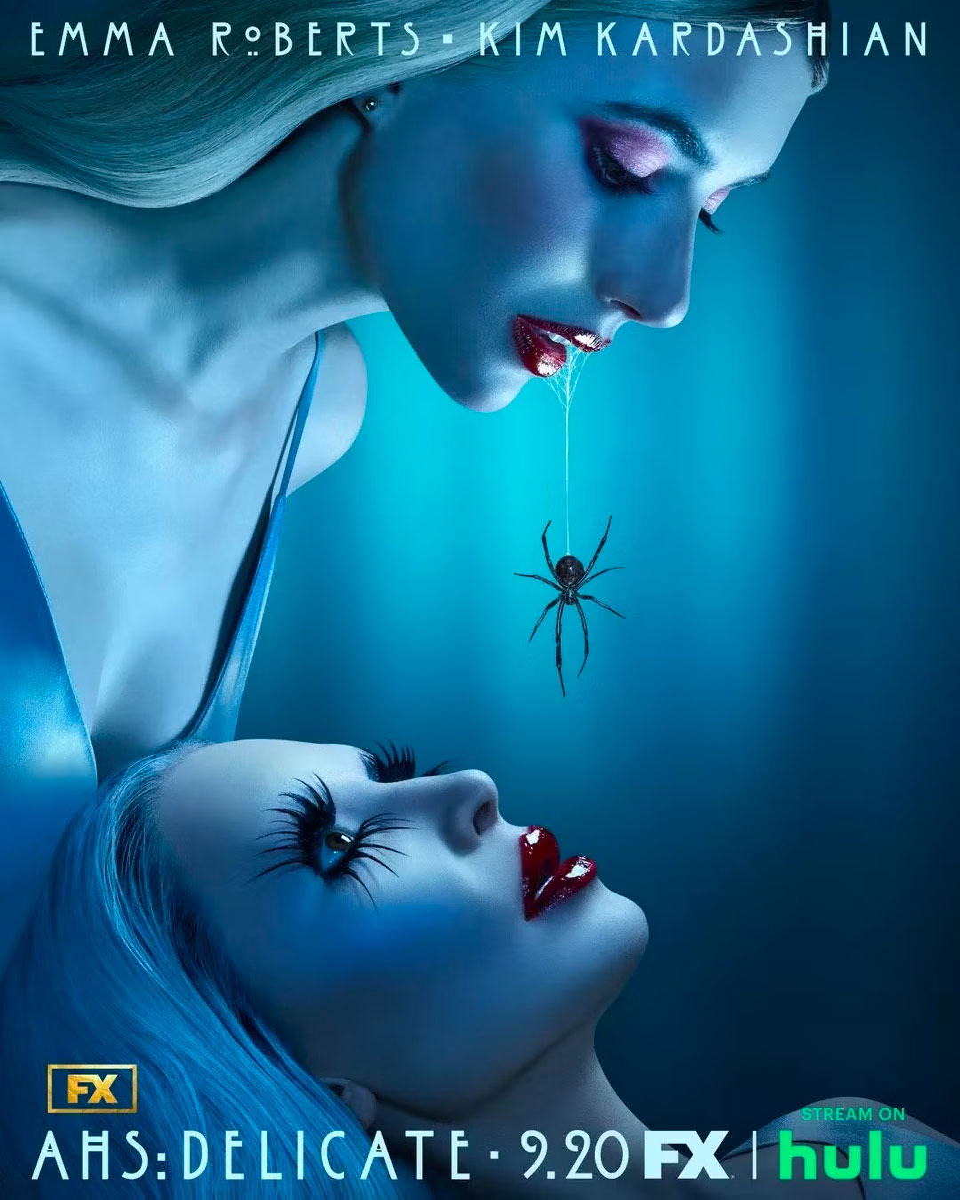La próxima temporada de American Horror Story tendrá a las arañas como protagonistas. Y no las amigables, así que si eres de los que les teme, mejor saltarte esta nueva entrega. Que tiene como protagonistas en el nuevo poster a la actriz Emma Roberts, quien alimenta con una araña a la recién llegada Kim Kardashian.