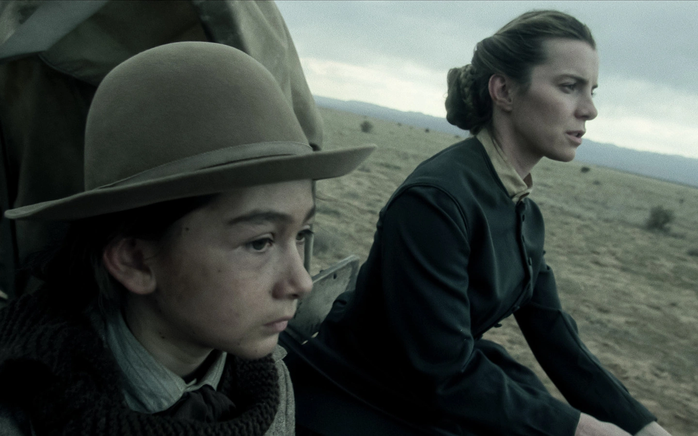 La que usa colores apagados y contrastantes -ocres de la meseta, verdes grisáceos de las montañas- para enmarcar una narración que se inicia cuando Sara y su hijo Devin (Preston Mota) llegan a Fort Bridger. El fuerte en que está quien los llevará a Crooks Springs, ciudad en vive el padre del pequeño.