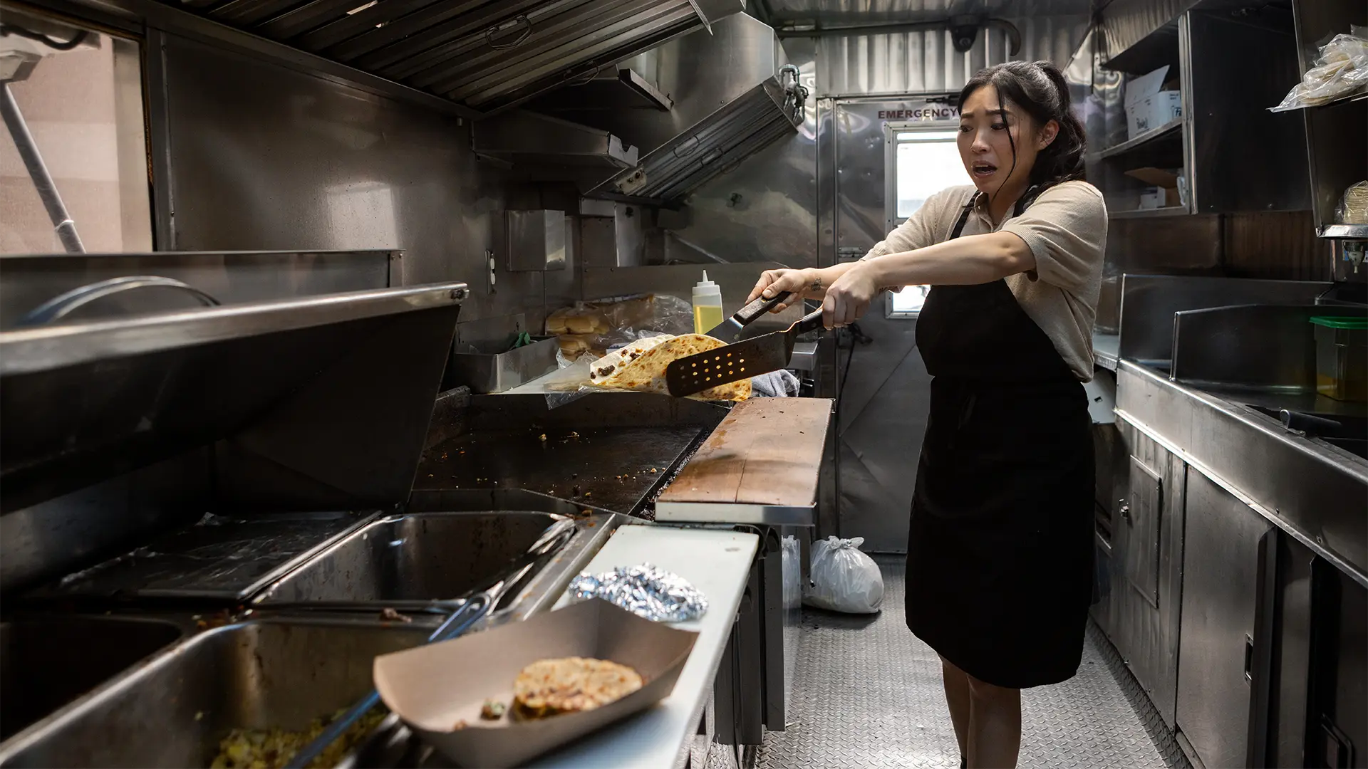 Awkwafina llega a la cocina con el pie izquierdo —ella misma lo admite: “podría arruinar hasta un ramen instantáneo”— y sin embargo esa torpeza es precisamente el punto de partida de The Unlikely Cook with Awkwafina. En esta serie sin guión de ocho episodios, la actriz, comediante y productora ejecutiva Nora Lum se embarca en un viaje íntimo y a la vez divertido por distintos rincones de Estados Unidos para explorar la cocina asiático-americana contemporánea y, sobre todo, para redescubrir las raíces de la tradición culinaria de su propia familia.
