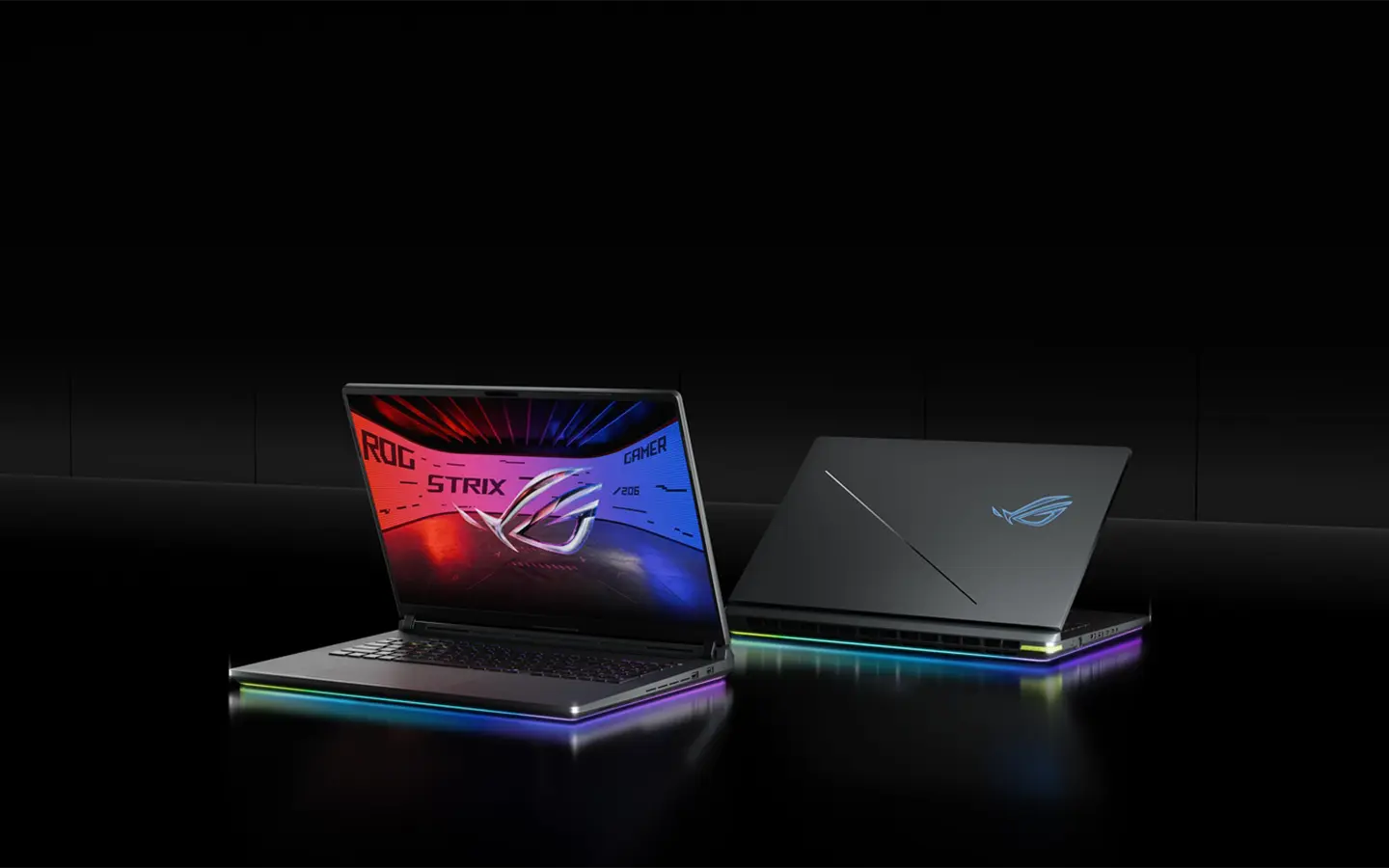 Desde 2018, los portátiles ROG Strix han presentado audazmente una barra de luz RGB en la parte inferior del chasis. Para 2025, la familia ROG Strix se enorgullece de presentar la primera barra de luces RGB envolvente completa del mundo. Diseñada para parecerse a los bucles que se encuentran en una pista de carreras. Esta barra de luz le da un brillo equilibrado a la máquina que hace que casi parezca que está flotando sobre la superficie del escritorio.