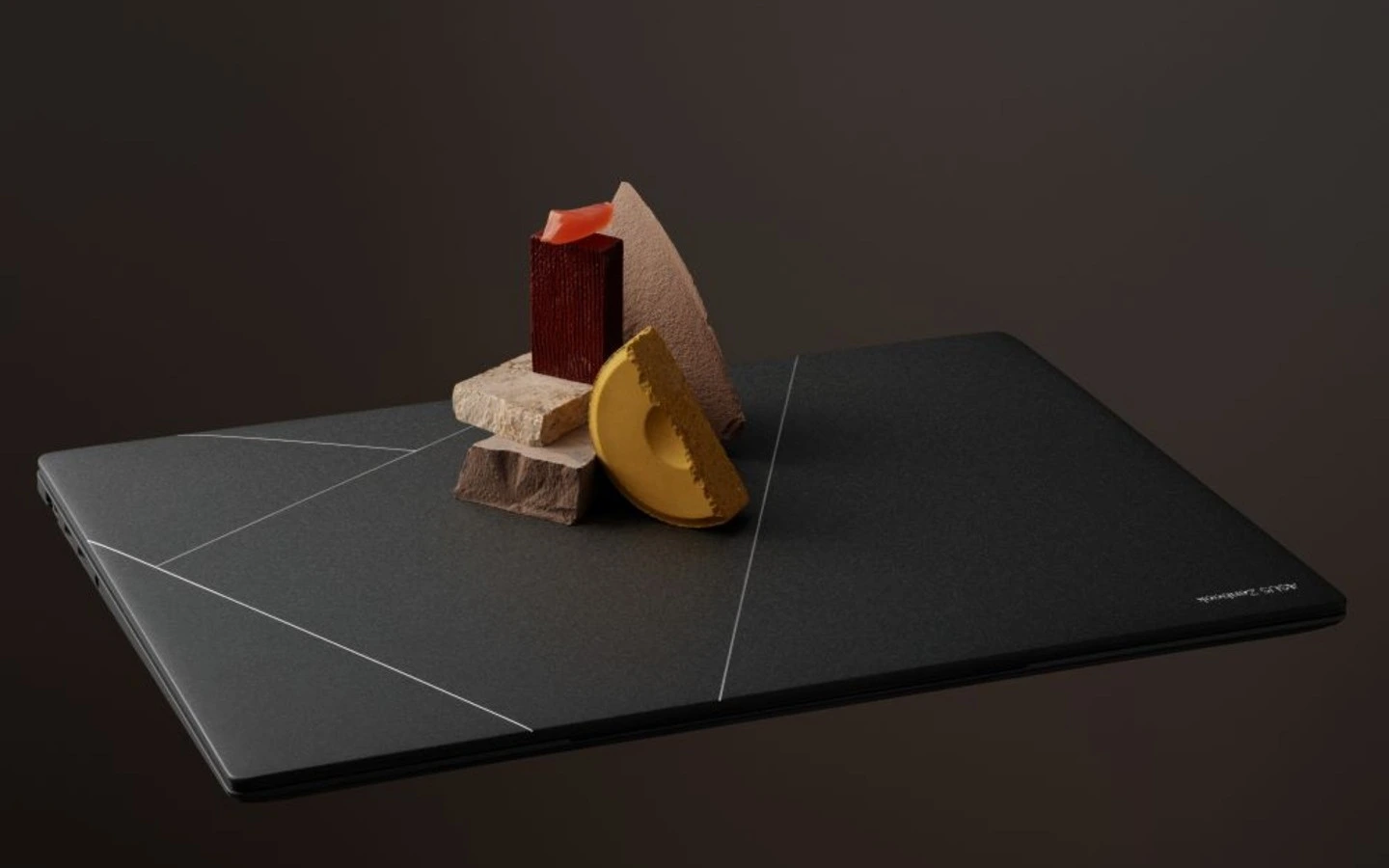 El fresado CNC también crea el exclusivo diseño de rejilla geométrica sobre el teclado y la ampliación del área del touchpad. La laptop está disponible la tonalidad Zumaia Gray, inspirada en las texturas y colores de los acantilados de flysch de Zumaia, España.