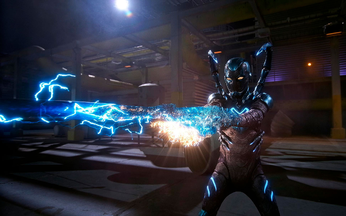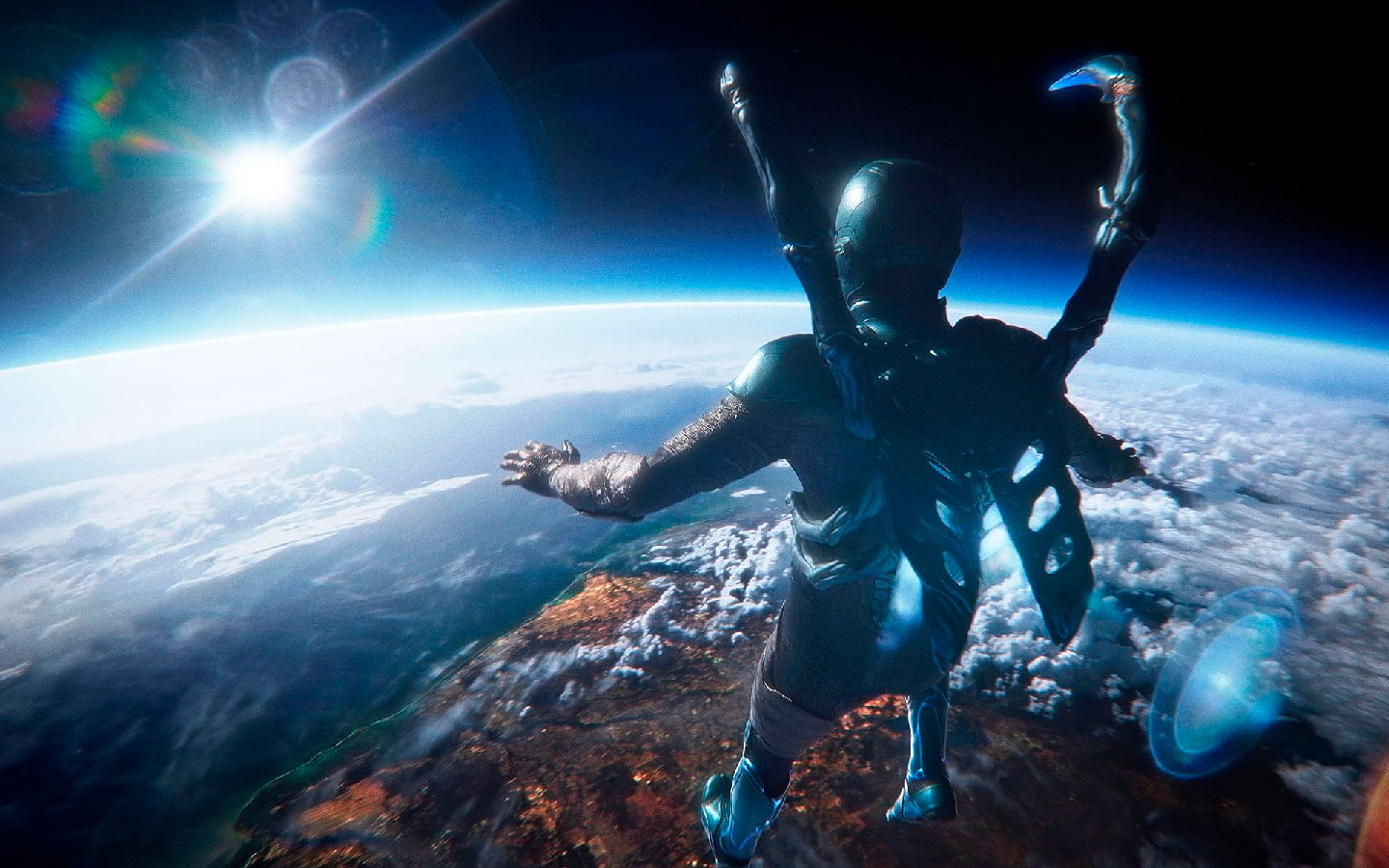 Protagonizada por Xolo Maridueña -a quien conocimos en la serie Cobra Kai- y con un elenco predominantemente latino. La cinta nos cuenta la historia de Jaime Reyes, un joven recién salido de la Universidad que debe comenzar su vida adulta. Y se propone sacar a su familia adelante, pues es el primero que se gradúa con estudios secundarios. De modo que, regresa a su ciudad natal, Palmera City (el Texas de DC). Una ciudad de evidente división social, en que los más pobres viven en suburbios. Mientras que los acaudalados viven en un futurista centro.