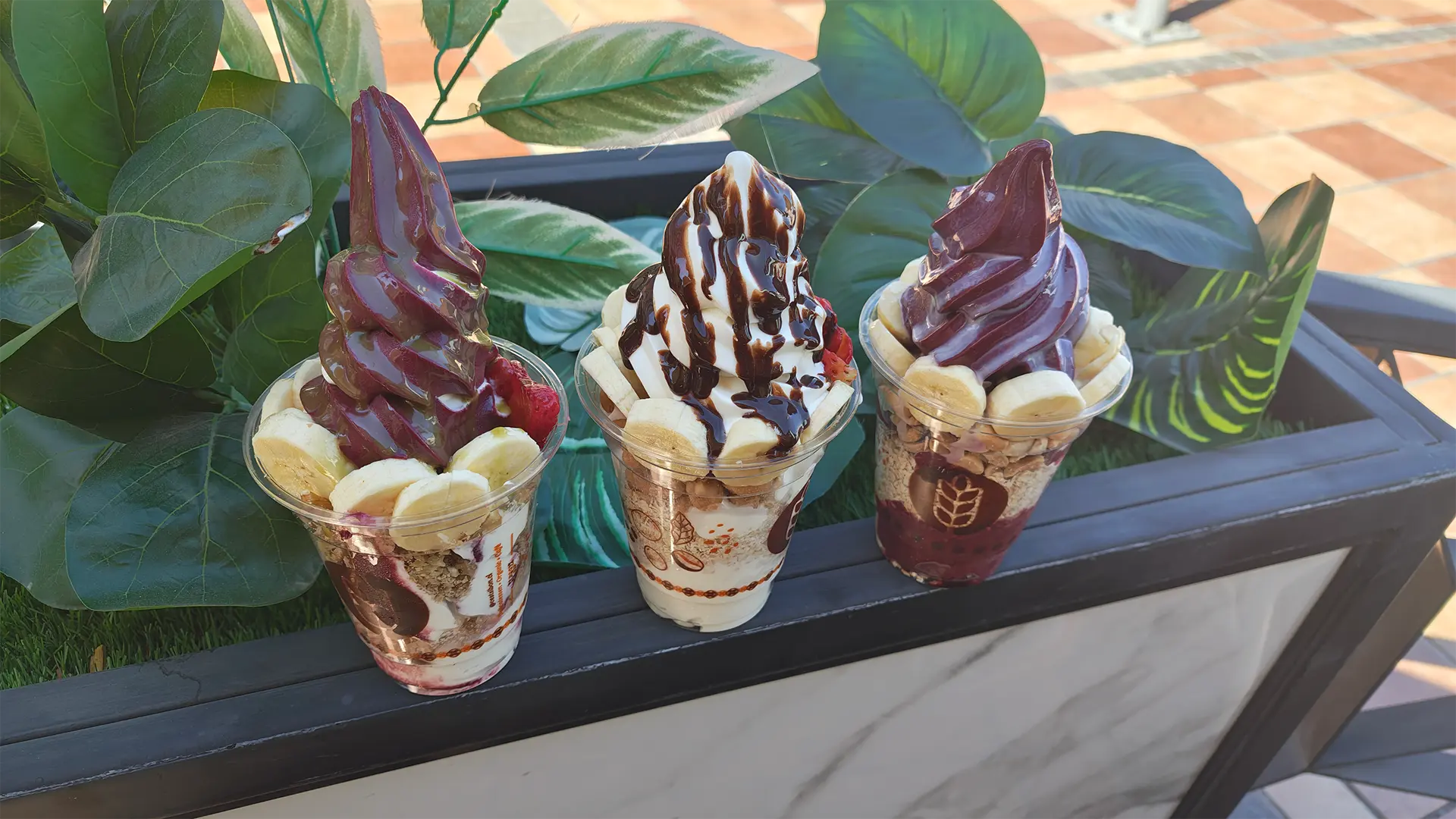 Disponible en tres variedades —açaí, griego y mixto—, esta carta ofrece distintos tamaños, desde el Petit (290 ml) hasta el Le Giant (740 ml), con precios que van desde los $5.590 a $12.890. Cada preparación incluye tres toppings gratuitos a elección, entre frutas, granolas y salsas, además de una amplia selección de toppings extra como miel, mantequilla de maní, frutas frescas o proteínas, ideales para personalizar cada vaso.