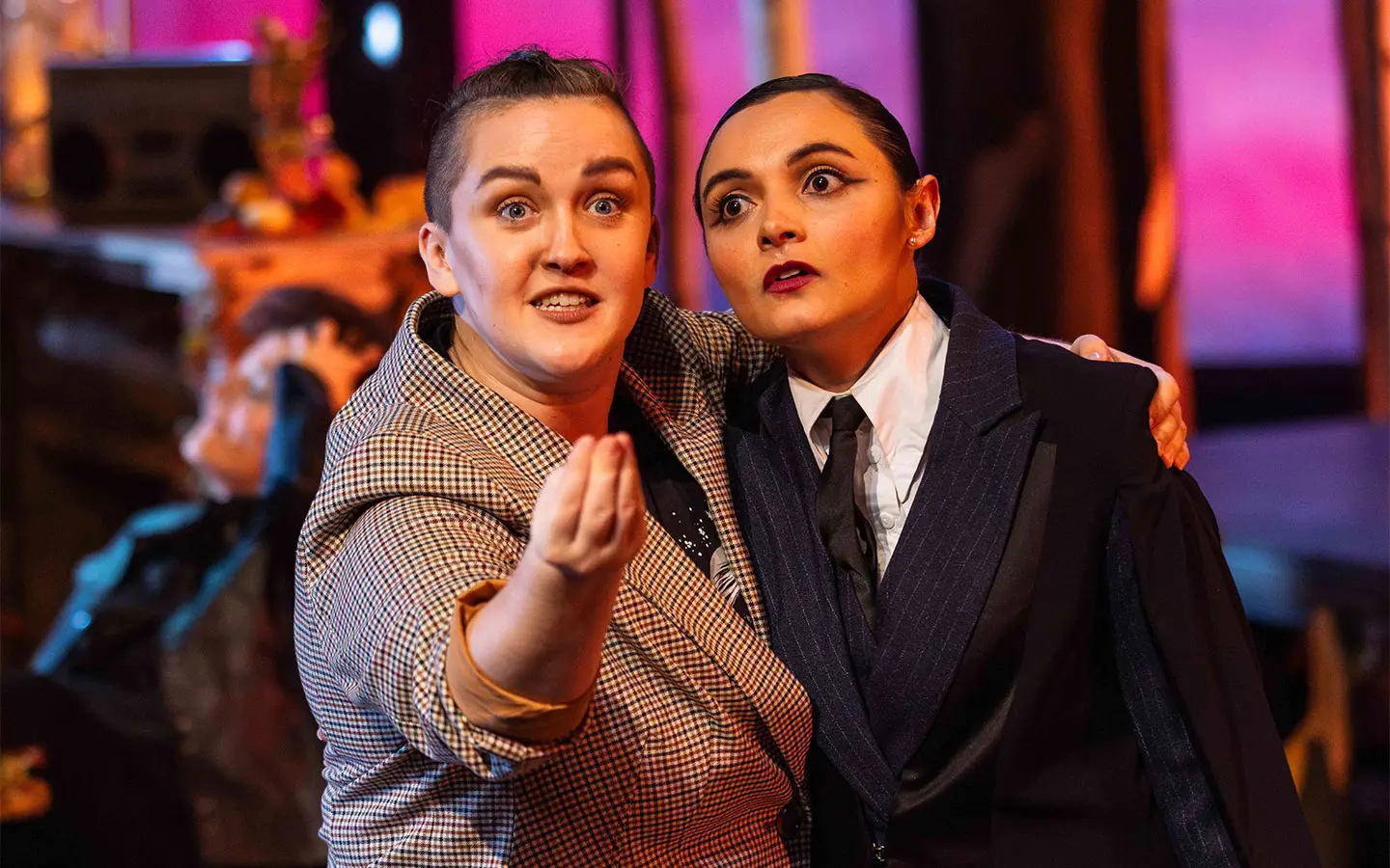 Las Felices Casadas de Windsor es una adaptación queer de la obra original del mismo nombre y estuvo a cargo de Eddie DeHais, quien además participó en la codirección del montaje junto a Corey McDaniel. La obra centra su trama en Falstaff (Jasmine Joshua), un alicaído rock star, quien hace décadas no ve momentos de gloria.