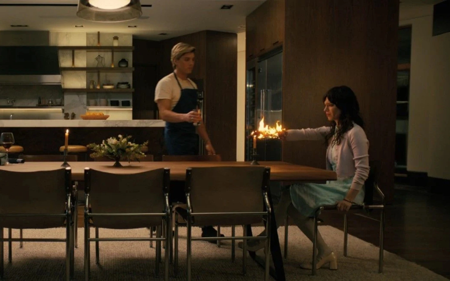 Pero acá, a diferencia de figuras siniestras como M3gan, la robot encarnada con soberbia por Thatcher solo busca sobrevivir, yendo más allá de la la inteligencia artificial -tan en boga estos días-, evidenciando una “humanización”. Al mismo tiempo que “Compañera Perfecta” hace una analogía con la sumisión femenina y las relaciones tóxicas.