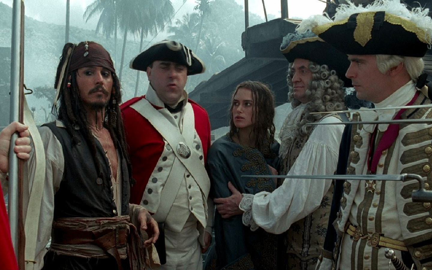 Tiempo después, Sparrow llega a Port Royal, donde se topa con la hermosa hija del gobernador, Elizabeth Swann (Keira Knightley). Los acontecimientos se precipitan y, cuando Barbossa ataca por sorpresa la ciudad, Elizabeth es secuestrada. Will Turner (Orlando Bloom), el herrero de la zona, y profundamente enamorado de ella, decide partir en su busca, y en su aventura cuenta con la ayuda del propio Sparrow, que ve una oportunidad para recuperar su preciada nave.