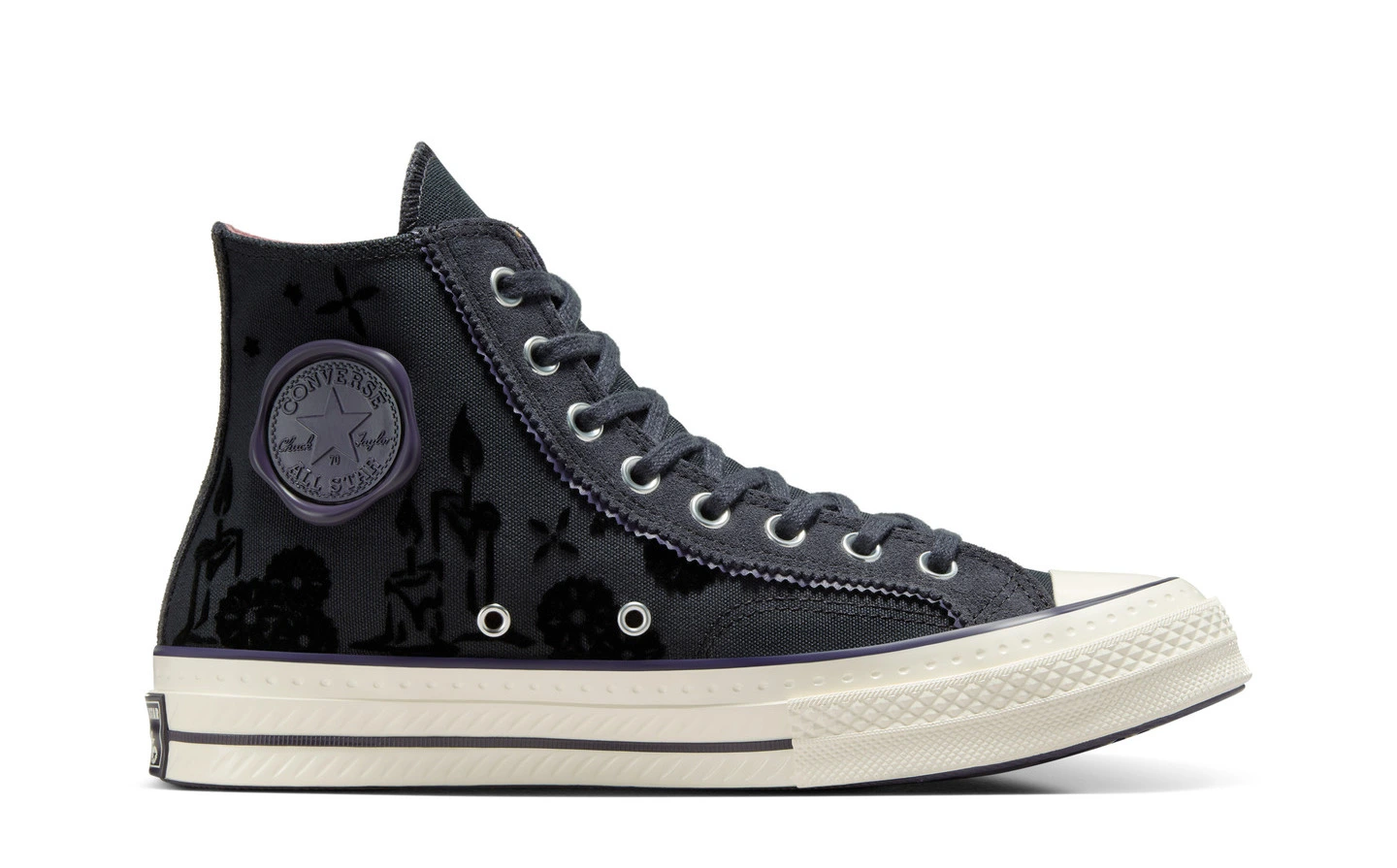Las Chuck Taylor All Star Lift están inspiradas en la delicadeza del papel picado, un elemento que adorna las ofrendas y simboliza la unión entre la vida y la muerte. Por otro lado, la Chuck 70 incorpora un estampado de flores, velas y calaveras hecho de gamuza suave, evocando la belleza y la solemnidad de la tradición.
