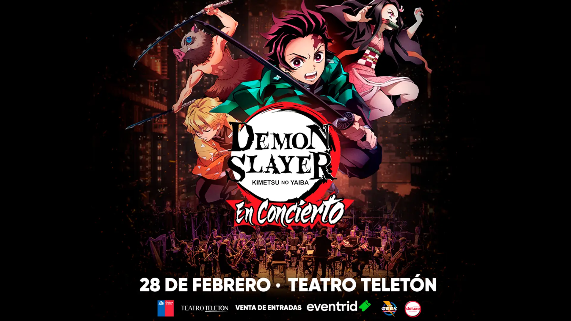 Una experiencia inigualable junto a la banda sonora de una de las series más trascendentales de los últimos años creada por Koyoharu Gotouge, se presentará el 28 de febrero de 2026 en Teatro Teletón, Santiago y las entradas ya se encuentran disponibles mediante sistema Eventrid. Demon Slayer en Concierto: Una noche épica de música y aventura.