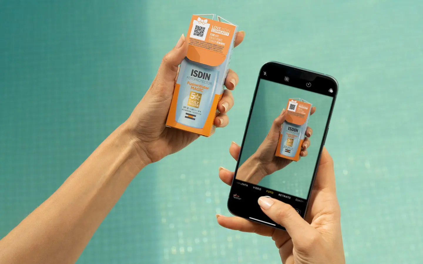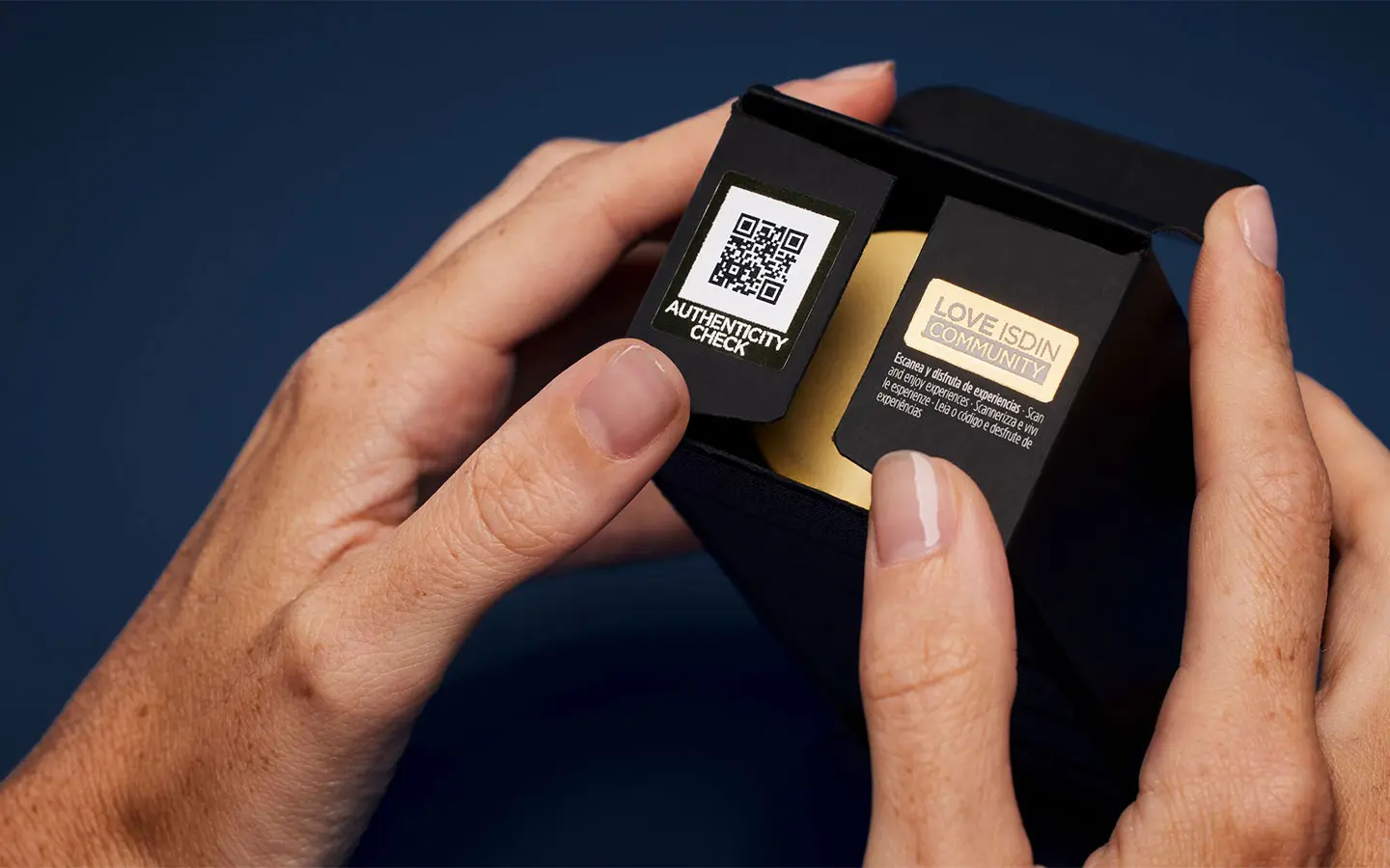 - Escanea con tu celular el código QR que encontrarás en el interior de la solapa superior (si tu producto viene en caja) o en un adhesivo lateral identificado con el sello LOVE ISDIN.