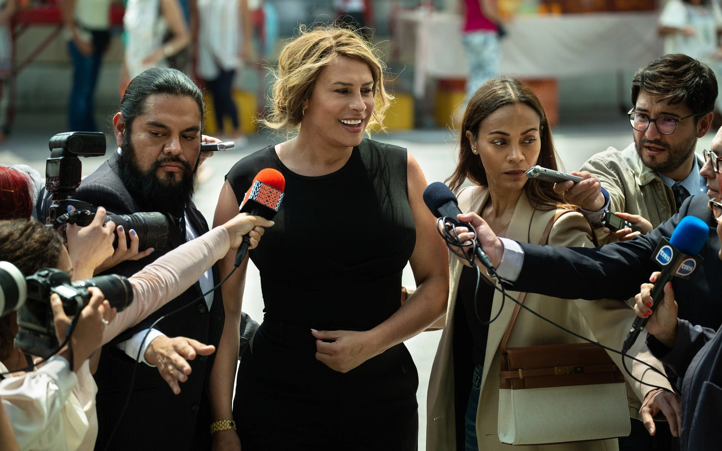 Como se conoce el inicio de la trama al capo del narcotráfico, encarnado soberbiamente por Karla Sofía Gascón, que contacta a la abogada Rita Mora Castro (Zoe Saldaña) para que lo ayude a concretar la cirugía que le permita asumir por completo el género de mujer con el que se reconoce.