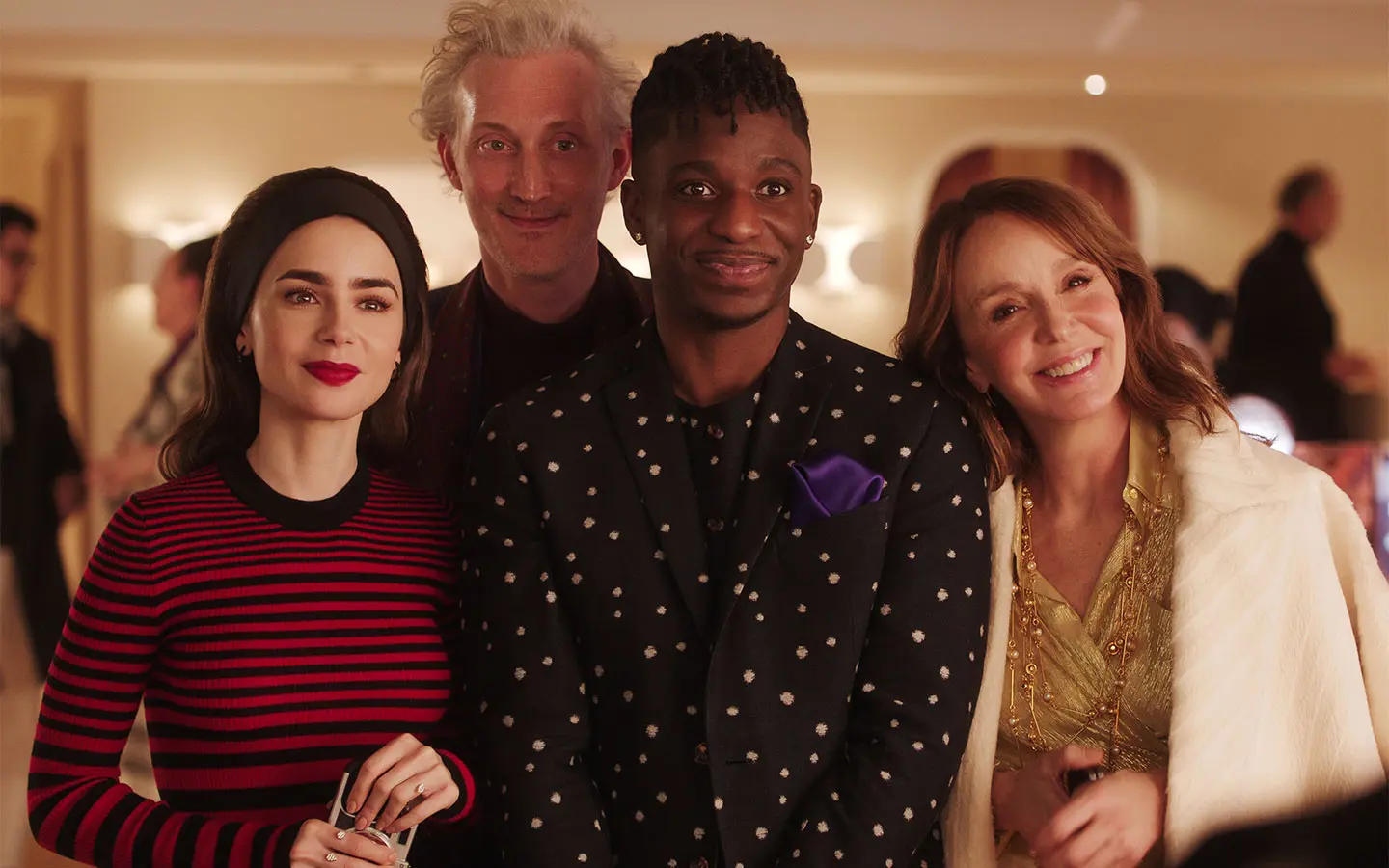- Elenco: Lily Collins (Emily Cooper), Philippine Leroy-Beaulieu (Sylvie Grateau), Ashley Park (Mindy Chen), Lucas Bravo (Gabriel), Camille Razat (Camille), Samuel Arnold (Julien), Bruno Gouery (Luc), William Abadie (Antoine Lambert), Lucien Laviscount (Alfie)