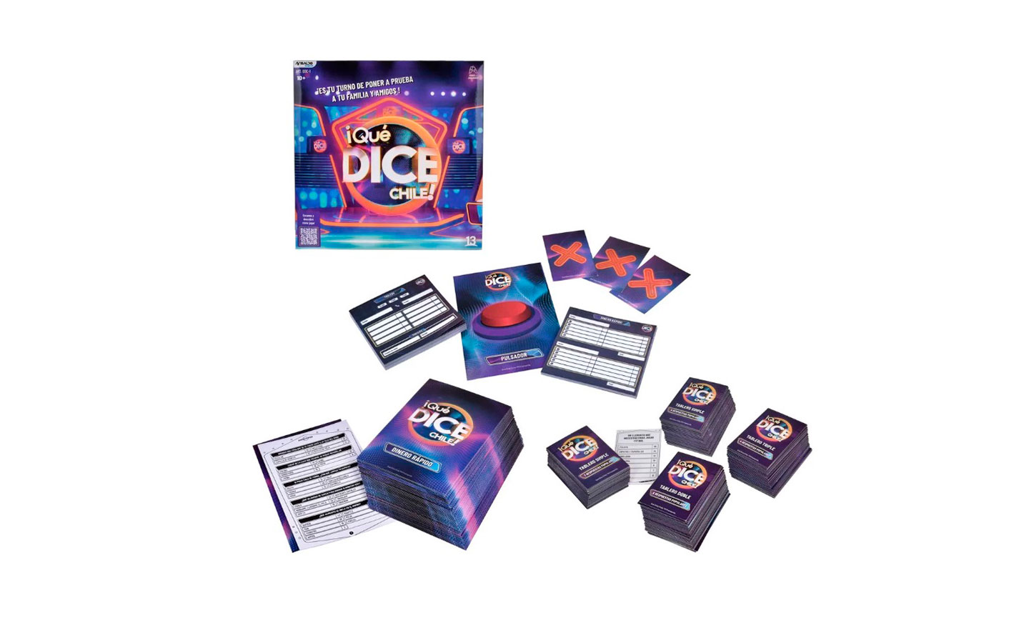 5.- Juego de Mesa: “Qué dice Chile”: basado en el programa de televisión de Canal 13 y conducido por Martín Cárcamo. “Qué dice Chile” es un duelo de memoria, rapidez e ingenio en el quese debe descifrar el pensamiento de los chilenos y chilenas. Por lo que viene con las mismas reglas del programa de televisión.
