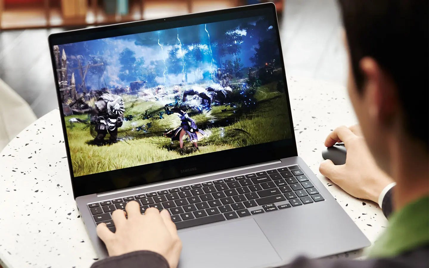 Aunque los buenos efectos visuales son fundamentales, disponer de audio avanzado es igual de importante para disfrutar de una experiencia de PC completa. Los altavoces Quad de AKG con Dolby Atmos ofrecen octavas altas y graves ricos para un sonido claro y nítido. Los micrófonos duales de calidad de estudio con cancelación de ruido bidireccional basado en IA captan tu voz con claridad durante las videollamadas. Incluso en entornos exteriores ruidosos. Cuando se vinculan con Galaxy Buds2 Pro, LE Audio — un avanzado estándar de audio Bluetooth- permite sonidos realistas con latencia reducida para que experiencias como los juegos sean más envolventes.