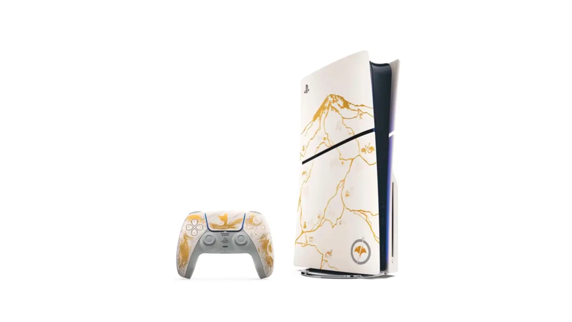 - Cubiertas de consola de PlayStation 5 Pro de la edición limitada dorada de Ghost of Yōtei