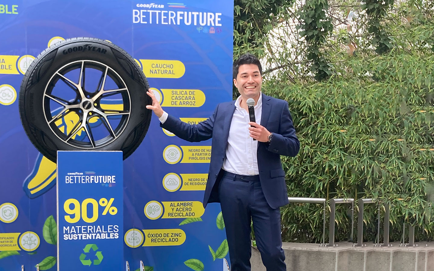 Goodyear acaba de presentar en Chile un neumático de muestra compuesto en un 90% por materiales sustentables. Neumático que ha superado las pruebas reglamentarias aplicables para rodar en Estados Unidos, así como las pruebas internas de Goodyear.