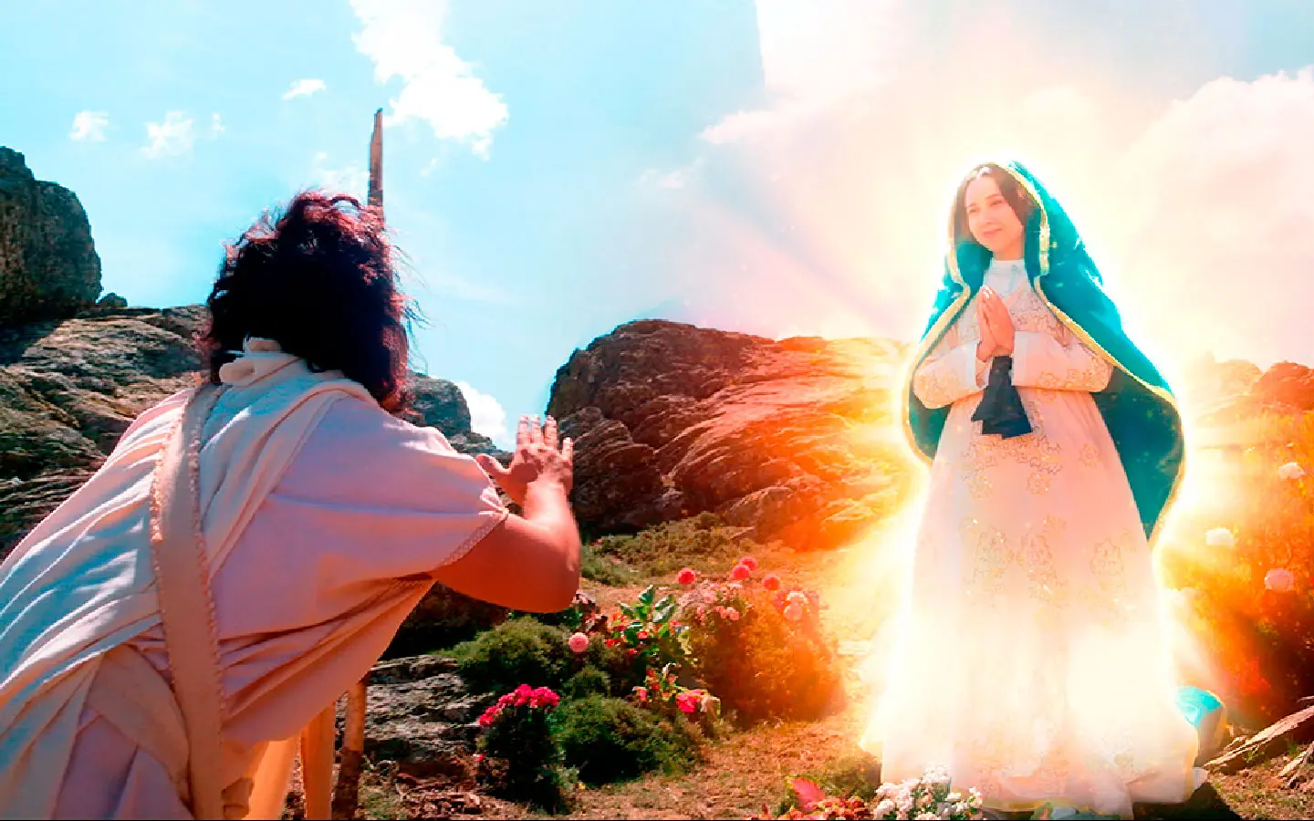 La película es protagonizada por los mexicanos Angélica Chong, quien interpreta a la Virgen de Guadalupe, y Mario Alberto Hernández, como San Juan Diego. La cinta nos muestra como ninguna madre se ha mostrado tan tierna y tan poderosa a la vez, como la que se apareció hace 500 años al indio Juan Diego. Hoy, la Virgen de Guadalupe despliega, más que nunca, su ternura y su poder en tantos lugares del planeta. ¿Por qué y cómo ocurrió lo que parecía imposible? ¿Qué misterios encierra la Tilma? ¿Son ciertos tantos relatos de milagros? Esta película nos traslada a las Apariciones como si estuviéramos allí presentes.