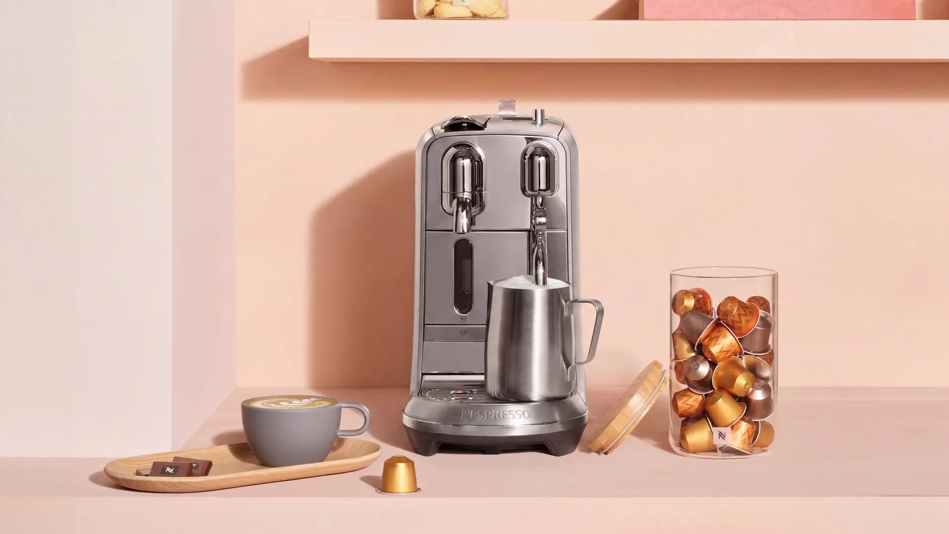 Pensada para integrarse con elegancia en cualquier espacio, la máquina Creatista Plus destaca por su diseño robusto de alta gama, con una estructura frontal completamente metálica y acabados pulidos que reflejan la esencia premium de Nespresso.