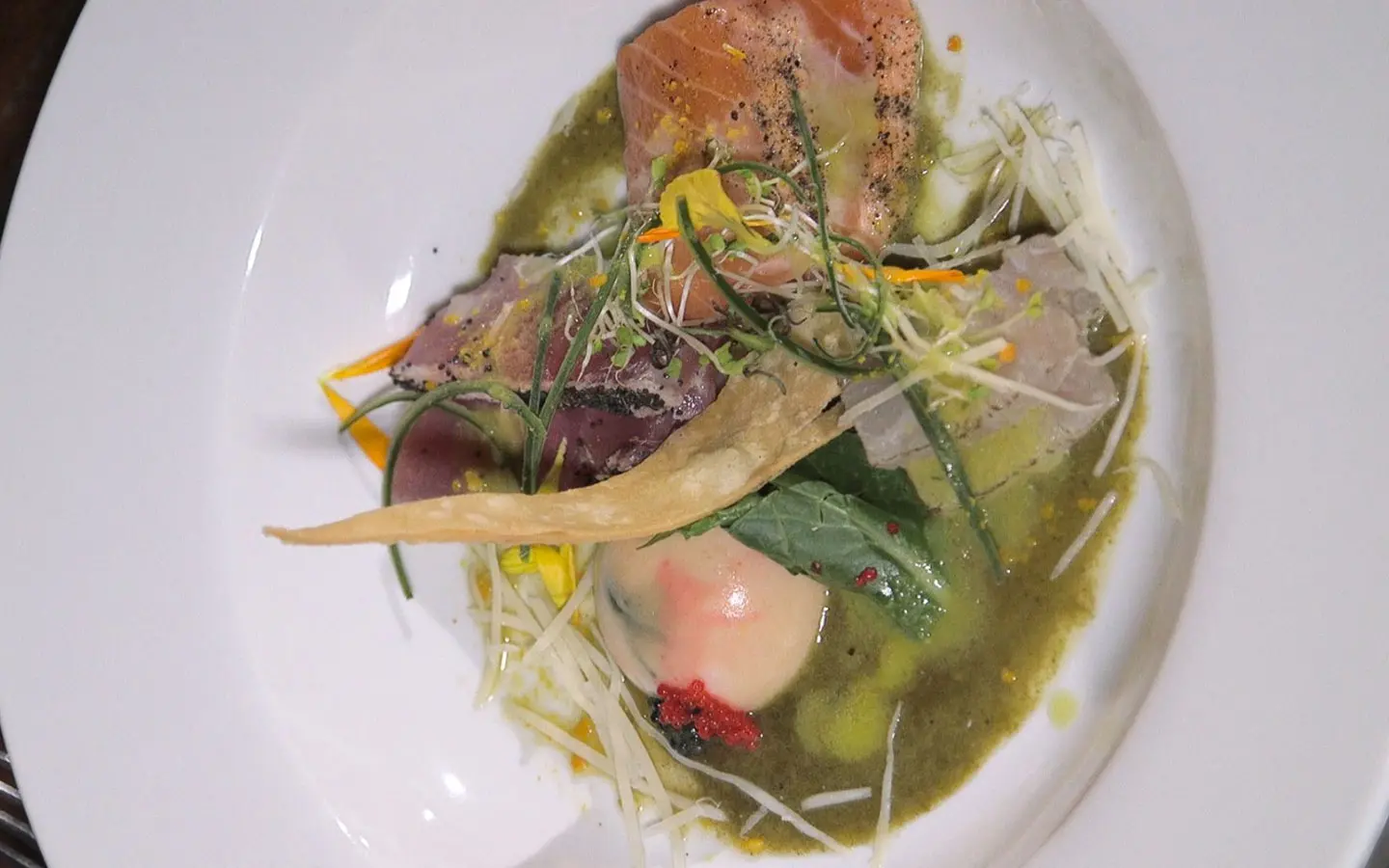 Sin perder por un segundo la alta gastronomía de restaurante Latin Grill, sacó inspiración de sus platos de todos sus restaurantes. Y los adaptó a una versión especial para este evento, la propuesta consistió en un canelón de palta, relleno de centolla de Juan Fernández. Texturas de mango y limoneta de cilantro para el comienzo. El segundo tiempo un salmón marinado en casa, con pistilos de limón confitado, aderezo de miel de azahar emulsionado con Dijón. Continuando también con productos del mar como un suave pulpo grillado con sedoso puré tinta de calamar, gel de albahaca, tomate asado a baja temperatura.