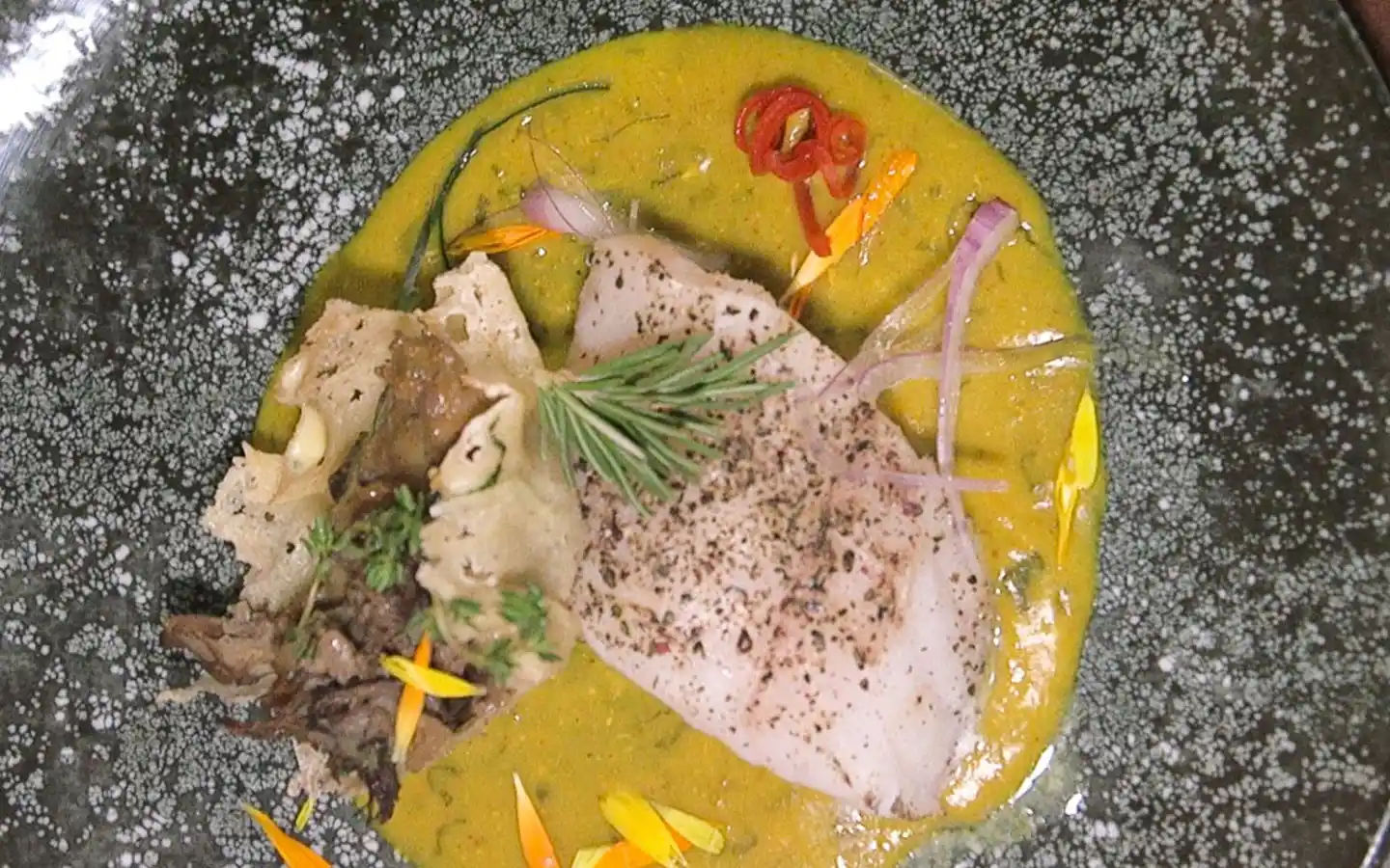 La cena se completó con un refrescante intermedio de Granita de Maracuyá y culminó con un Fondant de Chocolate o exquisito huevo de chirimoya alegre en nidal de caramelo.