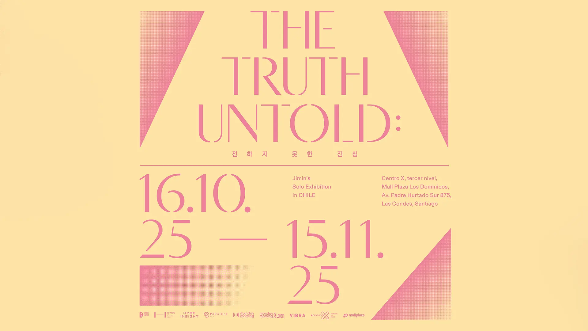 Los admiradores de Jimin tienen una cita imperdible: “The Truth Untold: 전하지 못한 진심” —la exhibición en solitario que celebra la carrera del artista en clave íntima y artística— abrirá en Santiago el 16 de octubre y permanecerá hasta el 15 de noviembre en Centro X, Mall Plaza Los Dominicos. El montaje propone un recorrido íntimo por la creatividad del cantante, reuniendo desde diarios y bocetos hasta escenografías de videoclips y momentos sonoros pensados para revivir los hitos de su trayectoria como solista.