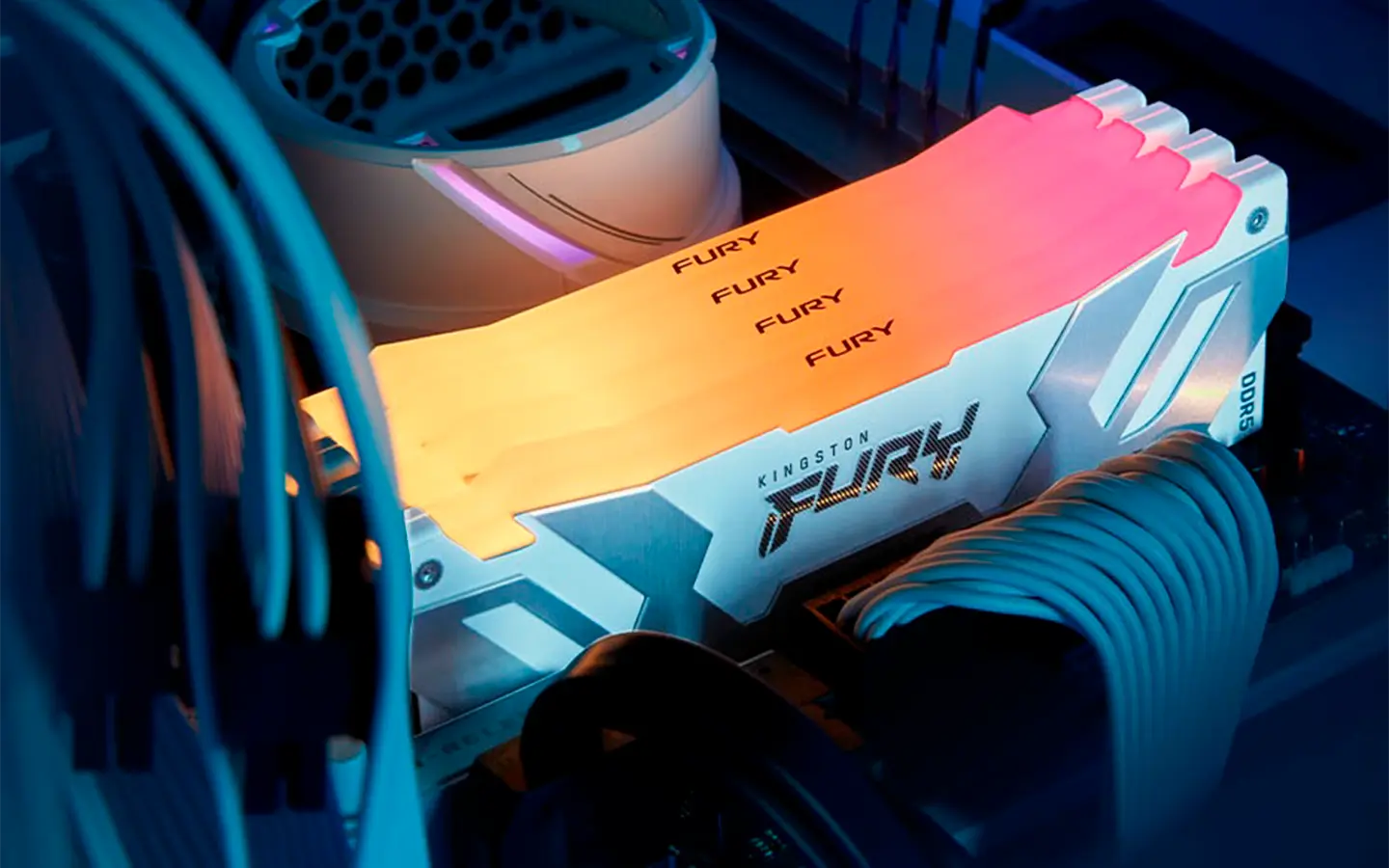 - RAM (memoria de acceso aleatorio): tener una RAM rápida y con suficiente capacidad es fundamental para los juegos. Ya que permite que el sistema almacene datos temporales a los que la CPU y la GPU necesitan acceder rápidamente. Si tu sistema no tiene suficiente RAM, la CPU tendrá más dificultades para extraer datos de los dispositivos de almacenamiento más lentos, lo que provocará texturas entrecortadas y una reducción de la velocidad de fotogramas. Al actualizar a una memoria RAM de mayor capacidad o más rápida, podrás reducir la carga de la CPU y mejorar el rendimiento general, sobre todo cuando realizas varias tareas o cuando se ejecutan juegos pesados. El estándar en memorias RAM es actualmente DDR4, y el más vanguardista ya disponible y que garantiza rendimientos máximos es el DDR5. En ese sentido, Kingston destaca sus memorias FURY Renegade DDR5, que tienen velocidades de hasta 8.400MT/s.