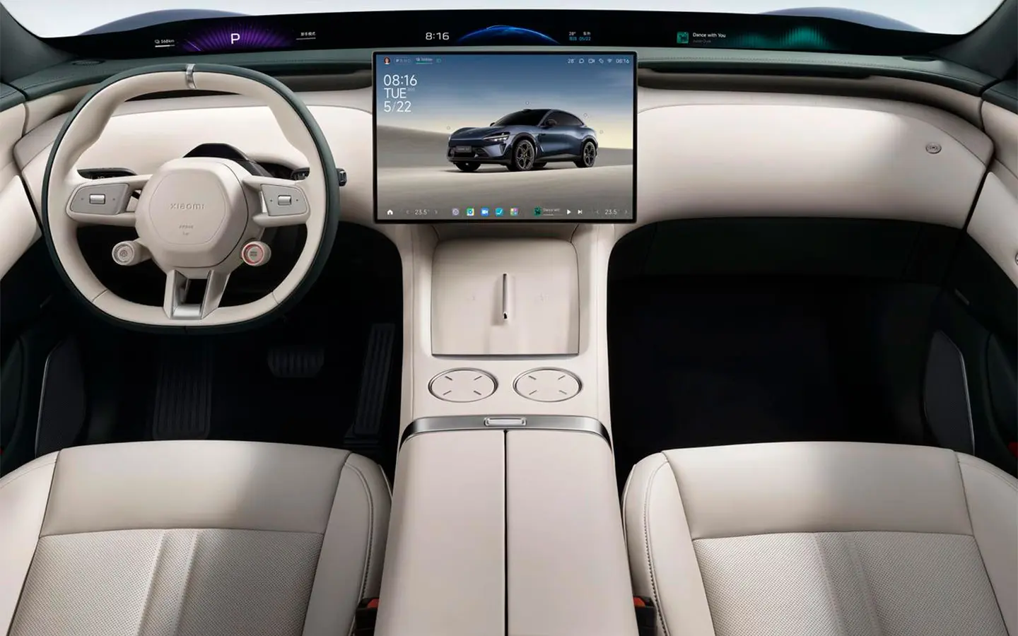 En el interior, el Xiaomi YU7 introduce la filosofía de “Cabina de Lujo Envolvente de Doble Zona”, combinando tecnología, lujo y confort. Destaca la nueva pantalla panorámica Xiaomi HyperVision de 1,1 metros, que ofrece información proyectada directamente en el parabrisas con una calidad de visualización superior (108 PPD, 1200 nits). Acompañada de un panel de control remoto, esta tecnología crea una experiencia inmersiva de estilo aeronáutico.