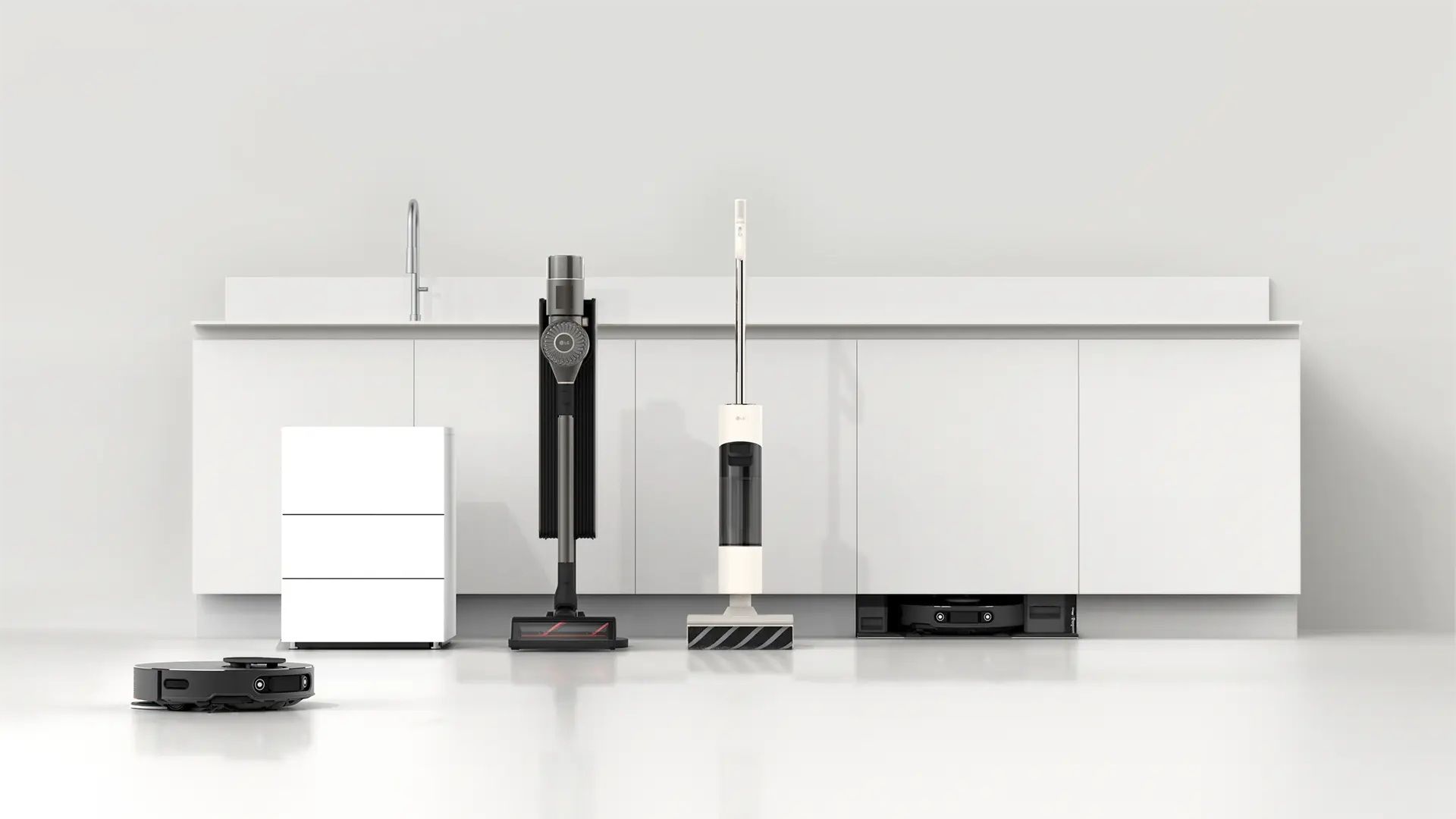 Diseñada pensando en los hogares europeos, la base de carga integrada de LG está diseñada para encajar perfectamente en el espacio no utilizado debajo del fregadero de la cocina, lo que permite una instalación ordenada y eficiente. Una puerta de apertura automática, casi invisible cuando está cerrada, permite que la aspiradora entre y salga sin intervención del usuario, ayudando a mantener una estética minimalista en la cocina.