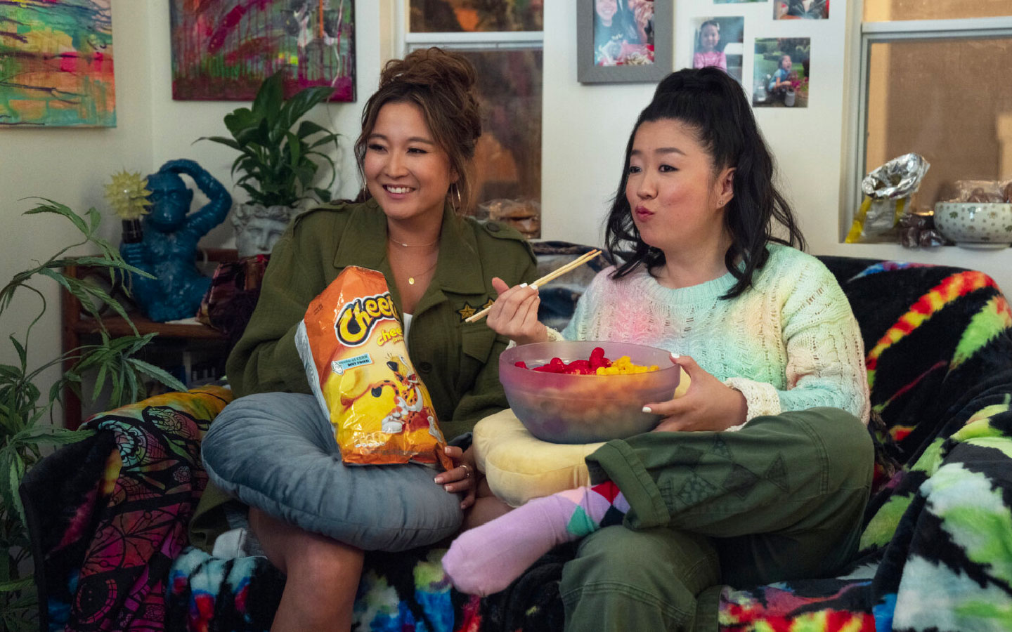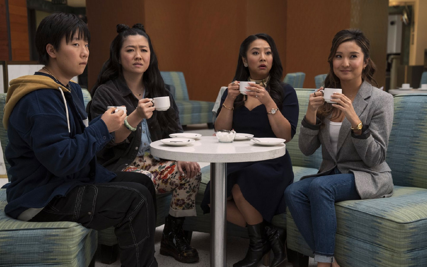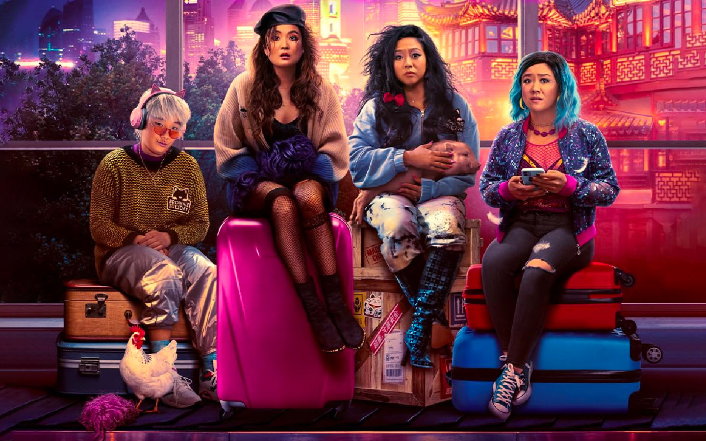 La química entre las cuatro actrices principales lo es todo. Ashley Park (Emily in Paris) realiza una mezcla perfecta entre chica seria y profesional, mujer empoderada y desinhibida, y muchacha que se siente perdida en el mundo; por su parte, Sherry Cola (Shortcomings) nos regala de los momentos más jocosos de la película como una mujer que dice y hace lo que piensa sin medir las consecuencias; Stephanie Hsu (nominada al Oscar por “Todo en todas partes al mismo tiempo”) maneja muy bien el retrato de la niña bonita y delicada del grupo, pero que carga con un pasado de desenfreno que reaparece cada tanto como un demonio; y Sabrina Wu (reconocida escritora y comediante) representa correctamente un personaje que parte como una caricatura, pero que luego va evolucionando en el transcurso de la historia.
