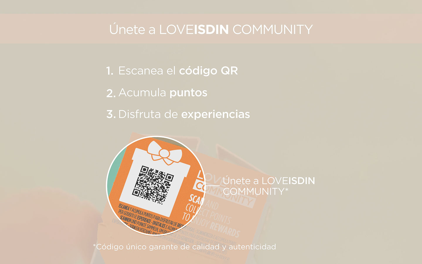 • PASO 2: Escanea el código QR que aparece en tus productos ISDIN y gana puntos. Cuantos más códigos escanees, más puntos podrás acumular.