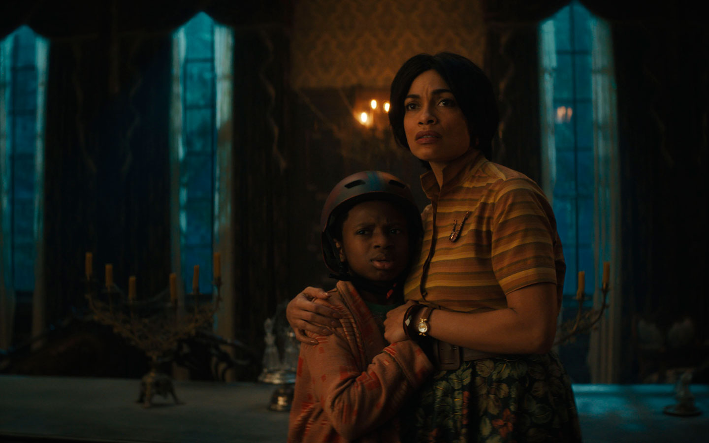 Por otra parte, desde el diseño de los sets hasta la creación del vestuario y el maquillaje, “Mansión Embrujada” se apoya fuertemente sobre en el universo visual creado para la atracción, y lo amplía de la mano de un equipo de talentosos artistas que idearon una aparienciaextraordinaria para los escenarios y los personajes de la película.