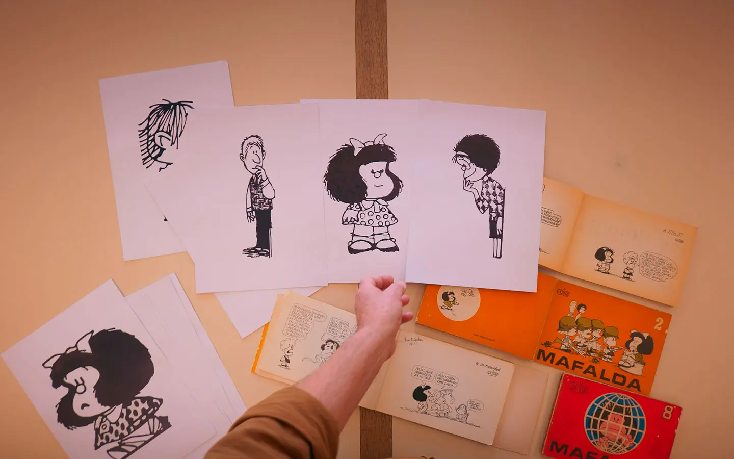 Los cuatro episodios de 30 minutos que componen la serie trazan los pasos de Mafalda, desde Buenos Aires, pasando por Milán, París, Madrid y Ciudad de México. En el proceso quedan reveladas las primeras ediciones de la historieta, así como sus traducciones a decenas de idiomas, sus versiones en colores y sus animaciones. La serie también va en busca de relatos de editores y personas allegadas a Quino que dan cuenta de cómo se expandió la tira y cómo su creador se consolidó como artista, mientras que referentes del mundo académico aportan su visión acerca de cómo y por qué Mafalda es un fenómeno que interpela a lectores de todo el mundo.
