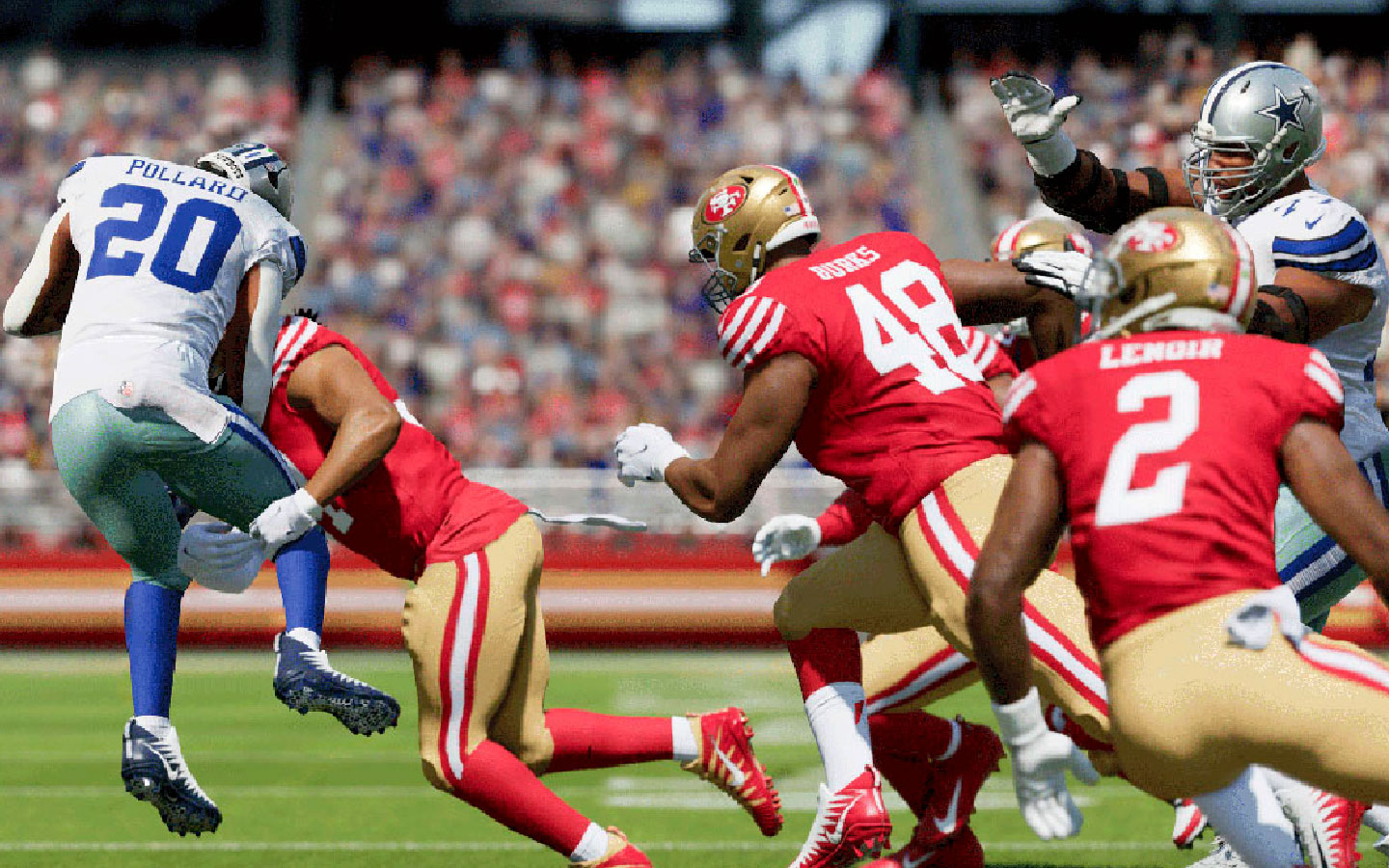 El segundo, es la dependencia de la IA, especialmente en defensa. Porque al manejar un solo jugador, muchas veces son nuestros compañeros lo que deben hacer el tacle o bloquear una jugada. Sin que uno tenga demasiada influencia en la secuencia. Es similar a como uno juega con el arquero automático en FIFA, pero son todos los otros jugadores del equipo, no solamente una posición. Claro, para quien esté acostumbrado a las entregas anteriores de la saga, esto no es noticia. Pero para un jugador nuevo, resulta un poco complicado en un principio.