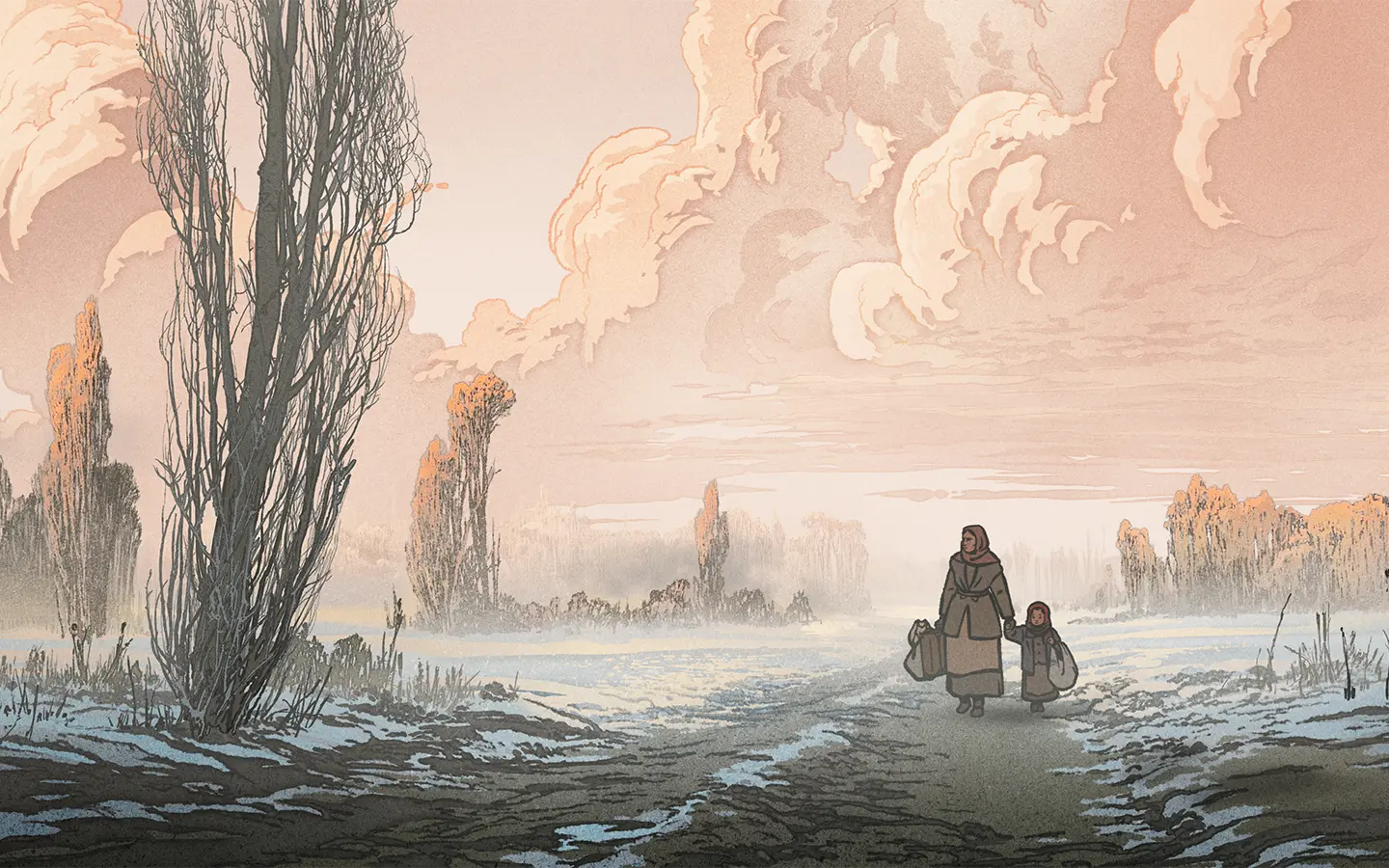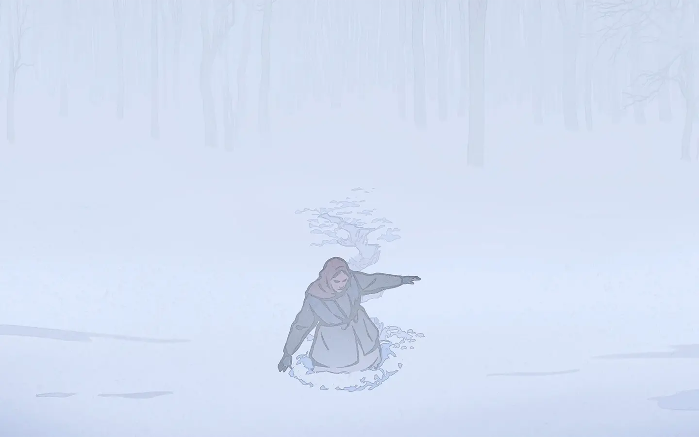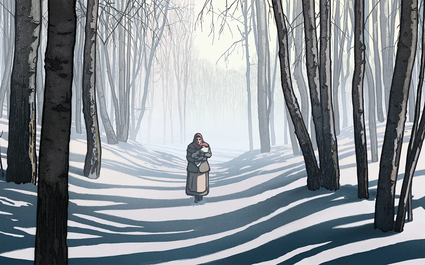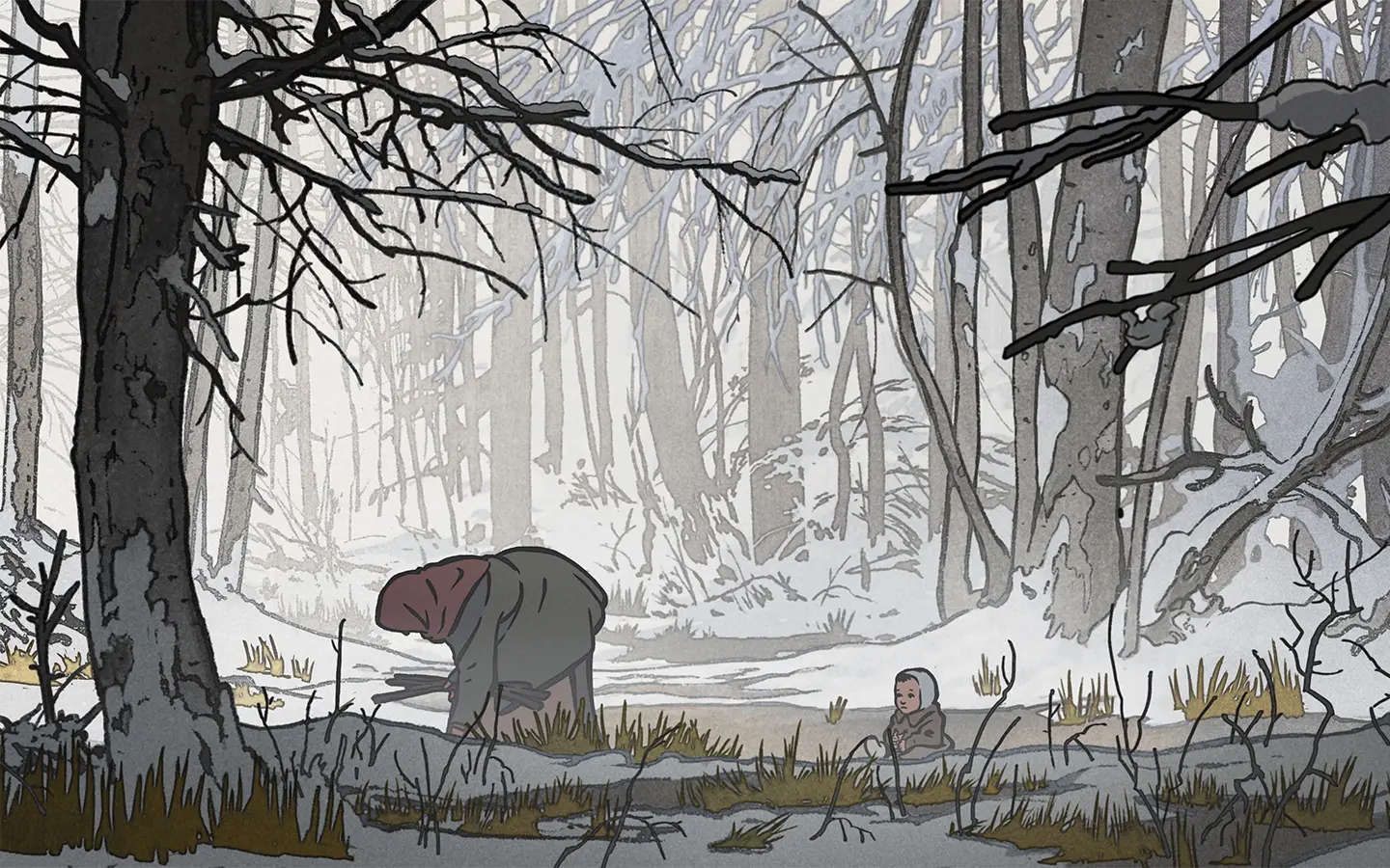 La película emplea una animación en 2D estilizada con trazos que evocan la estética del libro ilustrado. Utiliza una paleta limitada y melancólica, con el blanco y negro dominando gran parte del relato. Este estilo sobrio pero expresivo acentúa el carácter de cuento oral. Casi como si las ilustraciones cobraran vida para narrar una historia demasiado dura para ser dicha sin metáforas.