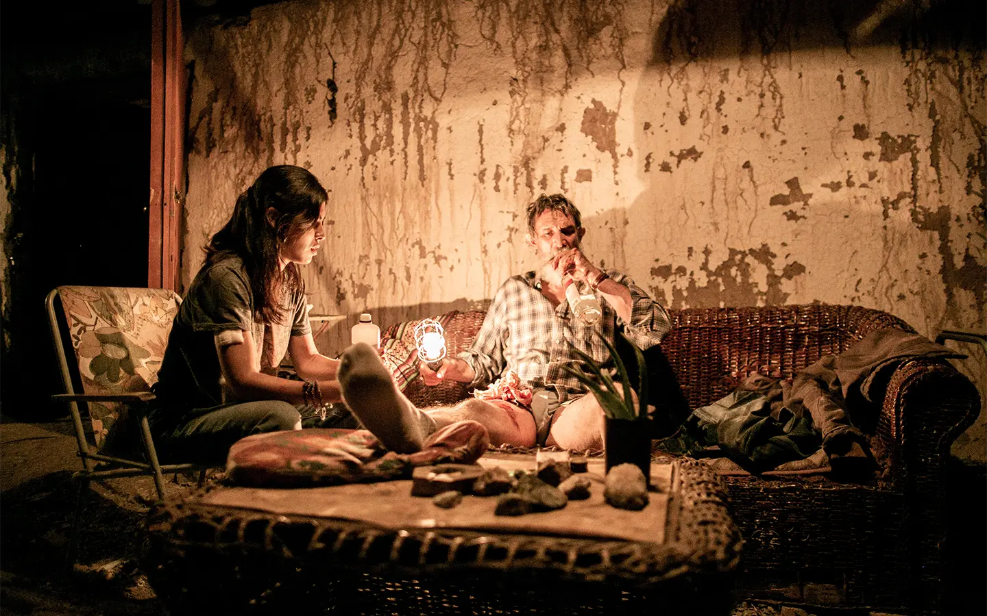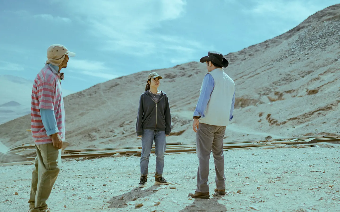 Pero Oro Amargo no sería lo mismo sin su potente propuesta visual. Filmada en Copiapó, en pleno desierto de Atacama, la película utiliza su locación como un personaje más. El calor, el polvo, la aridez del paisaje no solo se ven, se sienten. Hay un uso inteligente de los planos cerrados dentro de la mina, que acentúan el peligro, en contraste con los planos abiertos del desierto, que lejos de significar libertad, evocan aislamiento y desesperanza.