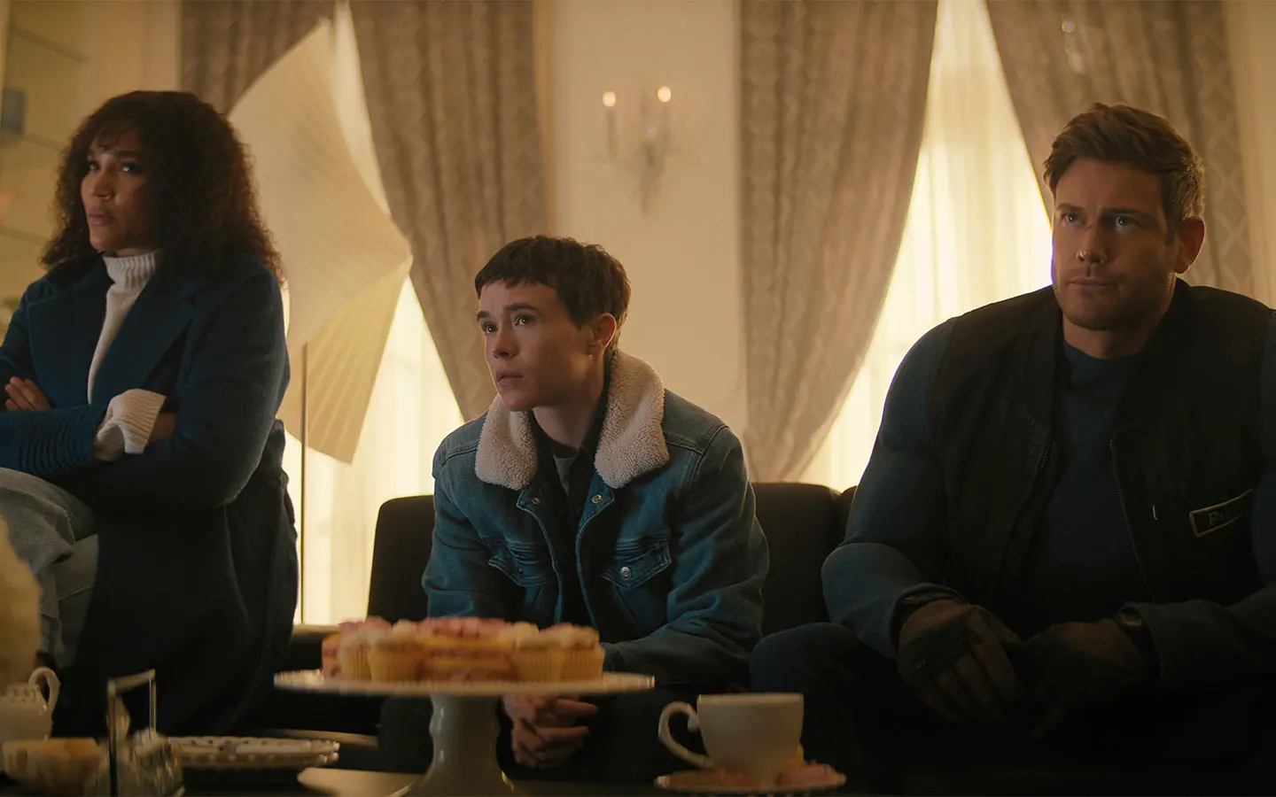 - Con: Elliot Page, Tom Hopper, David Castañeda, Emmy Raver-Lampman, Robert Sheehan, Aidan Gallagher, Justin H. Min, Ritu Arya, Colm Feore, Nick Offerman, Megan Mullally, David Cross, Victoria Sawal, Millie Davis, Liisa Repo-Martell