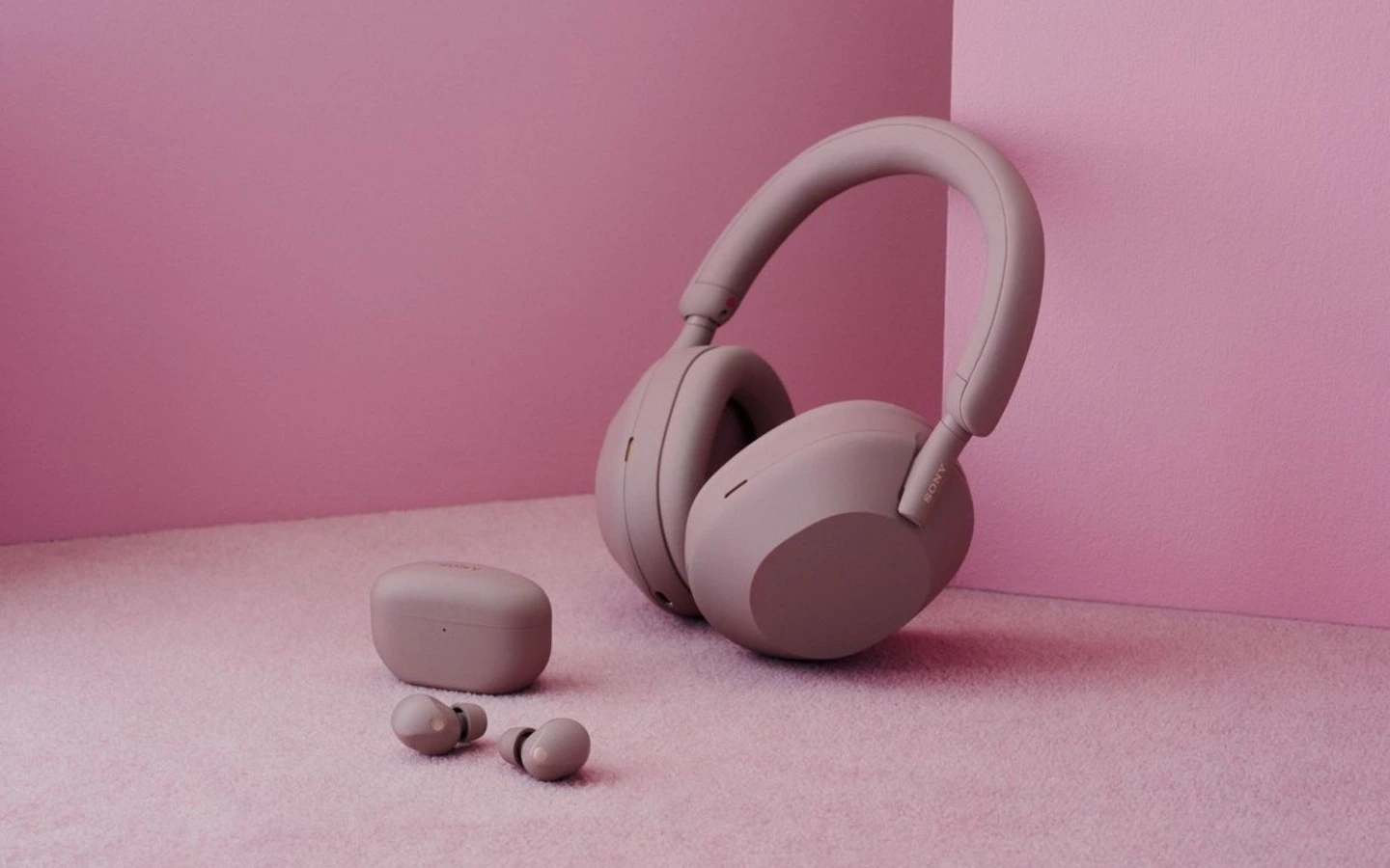 Sony presentó un nuevo color para sus premiados audífonos con cancelación de ruido 1000X. Los audífonos con cancelación de ruido WH-1000XM5 y WF-1000XM5 en color Smoky Pink (rosa viejo).