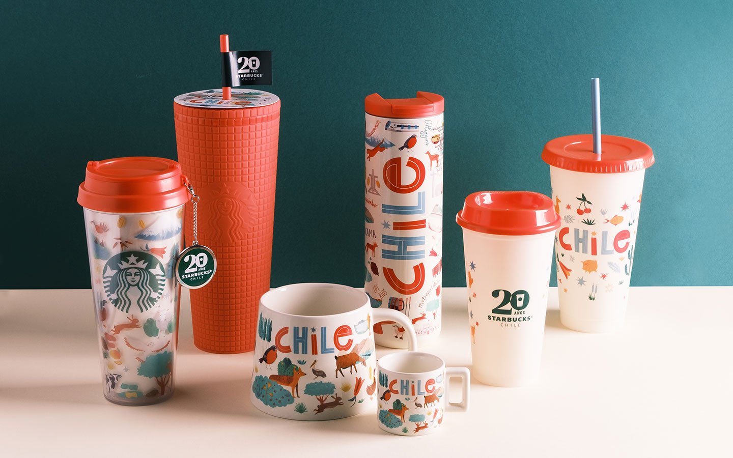 Para celebrarlo, la línea de mercadería 20 aniversario de Starbucks Chile fue diseñada por Francisca Luco (@franciscaluco), partner de Starbucks Chile. A través de sus ilustraciones, Francisca dio vida a diversos íconos y símbolos que representan a Chile, como el poderoso cóndor andino. A partir del 5 de septiembre de 2023, los miembros del programa Starbucks Rewards® tendrán la oportunidad exclusiva de comprar la colección, mientras que estará disponible para el público en general a partir del 6 de septiembre de 2023 en todas las tiendas del país.