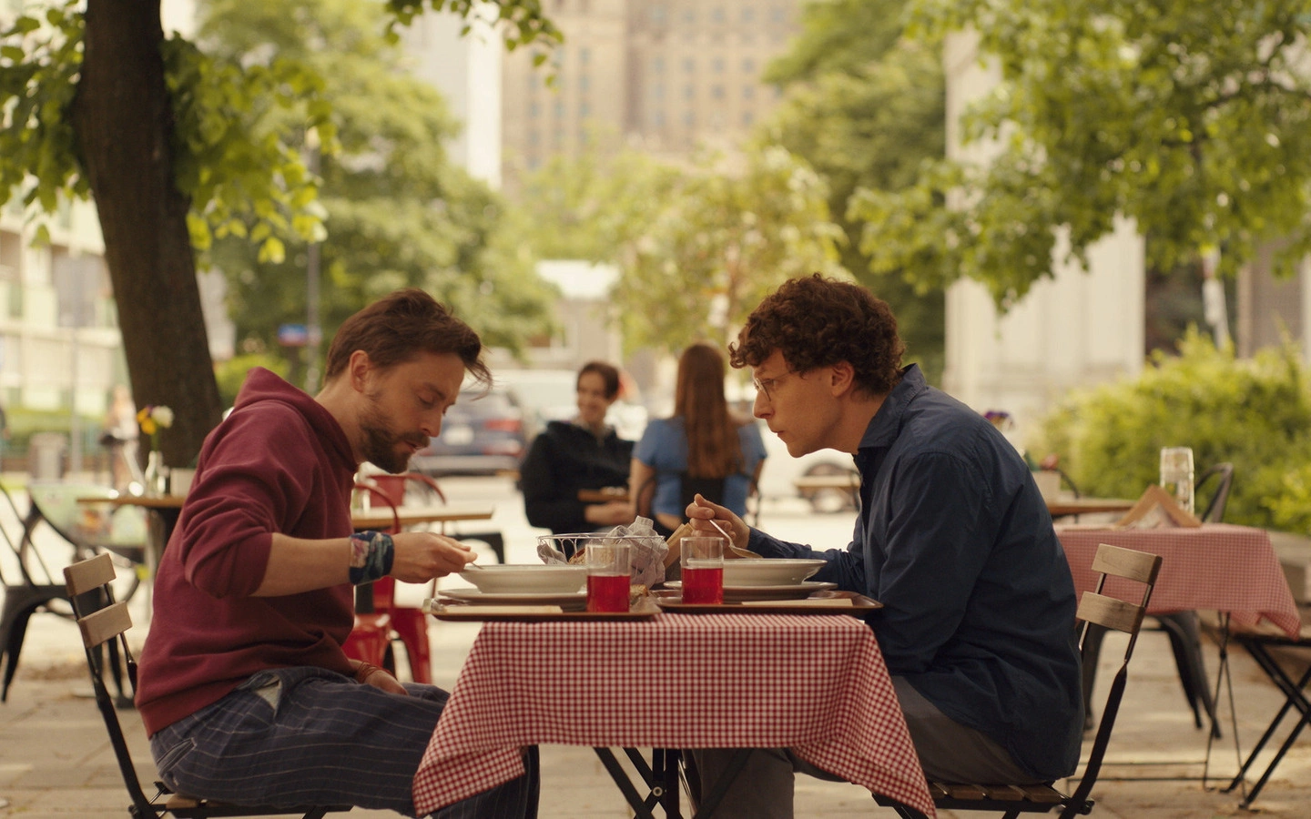 Un reencuentro con la dirección y la escritura de un guión que Eisenberg complementa asumiendo uno de los papeles principales: David Kaplan, un esposo y padre de familia que se gana la vida creando anuncios para internet. Un trabajo que para su primo es sinónimo de haberse vendido al sistema.