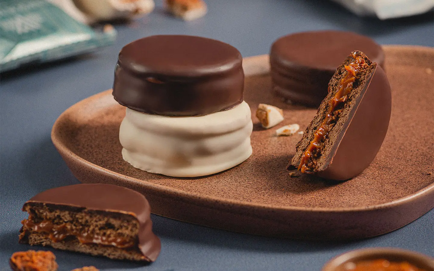 • Nuevo Alfajor Bitter Sin Azúcar: Con una galleta de chocolate rellena con un suave manjar y cubierta de chocolate bitter sin azúcar añadida.