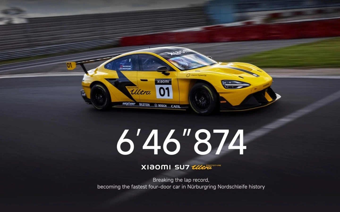 El Xiaomi SU7 Ultra cuenta con el mismo sistema de propulsión que usó el prototipo, lo que ofrece rendimiento excepcional. Como base para el Xiaomi SU7 Ultra, el prototipo Xiaomi SU7 completó su desafío de velocidad de vuelta en el Nürburgring Nordschleife. Donde logró un tiempo de 6’46″874 y rompiendo así el récord de vuelta más rápido de un coche de cuatro puertas. El que databa de hace siete años, en el Nürburgring el 28 de octubre de 2024.