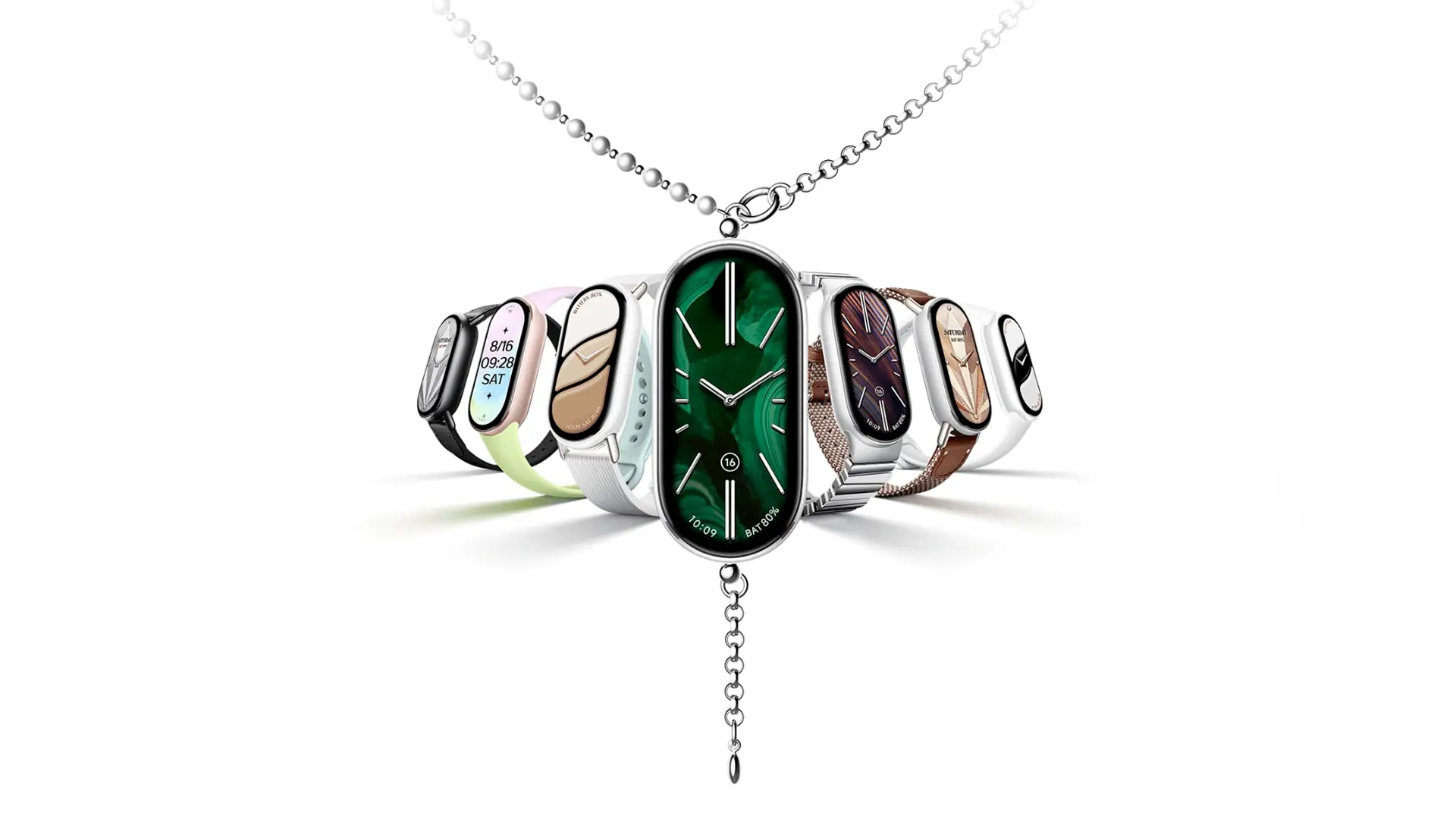 Diseñada para el bienestar personalizado, un estilo elevado y funcionalidad duradera, la Xiaomi Smart Band 10 incorpora una pantalla AMOLED de 1,72″ con biseles simétricos de 2 mm y una resolución de 326 PPI. Su relación pantalla-cuerpo del 73 %, tasa de refresco de 60 Hz y brillo HBM de 1500 nits ofrecen imágenes fluidas y vibrantes. El control táctil resistente a la humedad asegura una interacción confiable en diversas condiciones, mientras que la nueva edición en cerámica blanca perlada y sus 10 accesorios versátiles, incluyendo un colgante tipo cadena de perlas con cuatro modos de uso, elevan el diseño del uso diario.